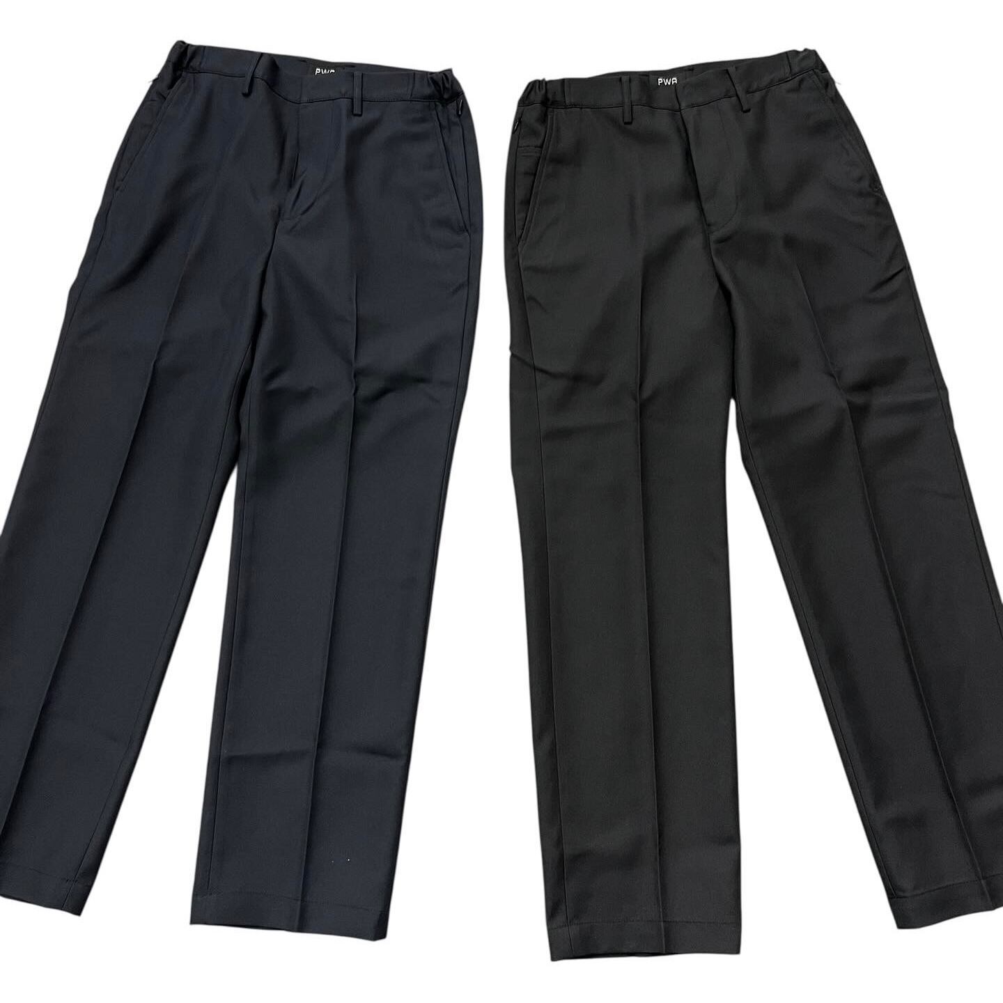 PWAの定番ワークスラックス。UNIHOME-02をベースに、シルエットをやや細くストレートシルエットに仕上げたモデル。環境に配慮する為、ペットボトル再生原料を使用したリサイクルポリエステルを採用。ドライなタッチと繊細な質感、きれいな落ち感が特徴です。