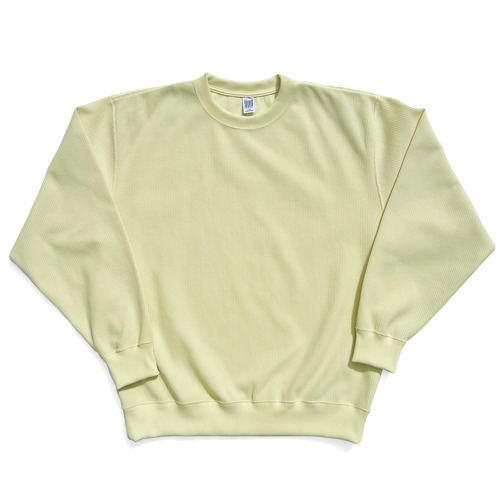 組織の中に伸縮性のあるポリエステルが組み込まれた 独特の反発感を持つワッフル素材を使用したクルースウェット。 紫外線防止・透温性にもすぐれ、デイリーにもスポーツにも対応可能な アクティブなアイテム。