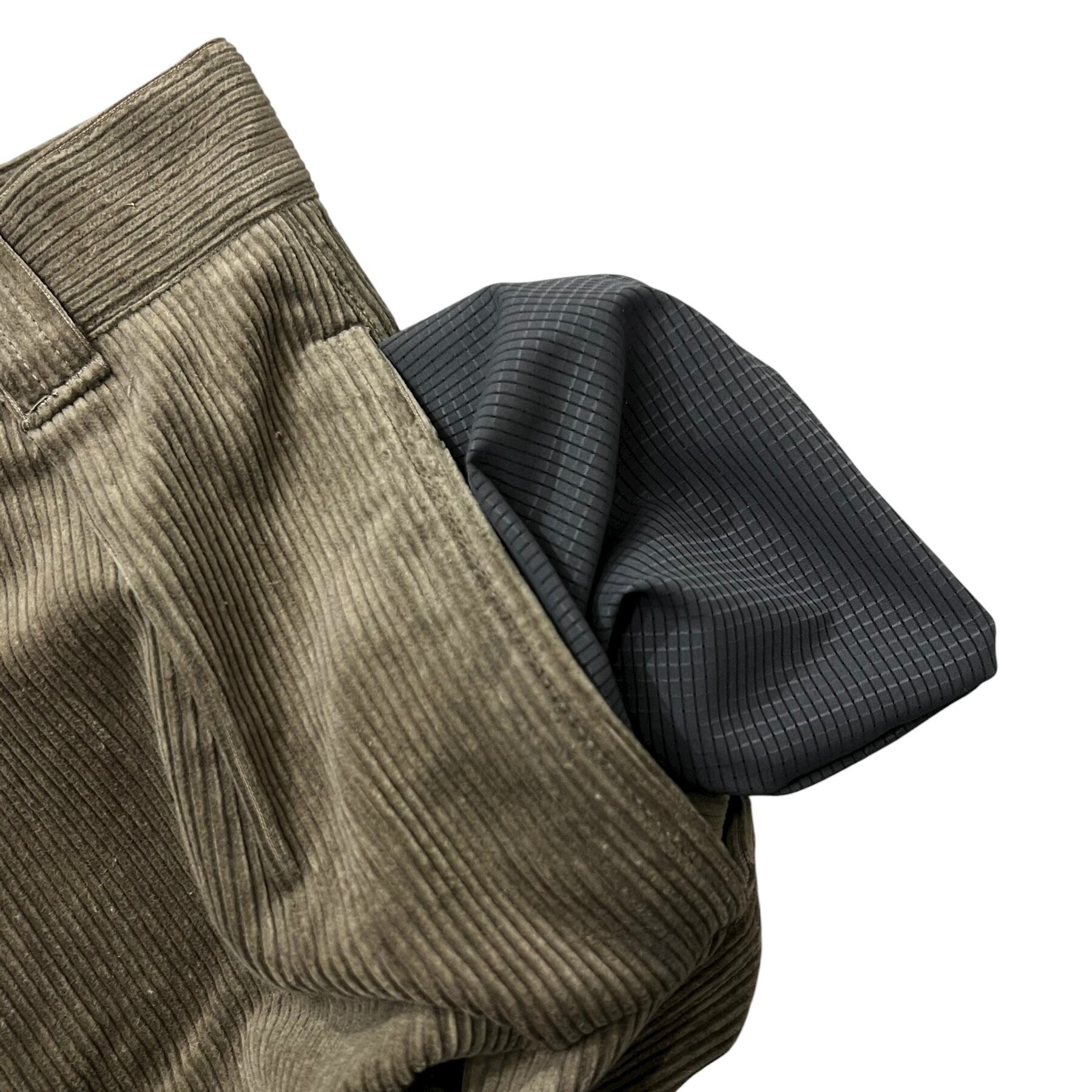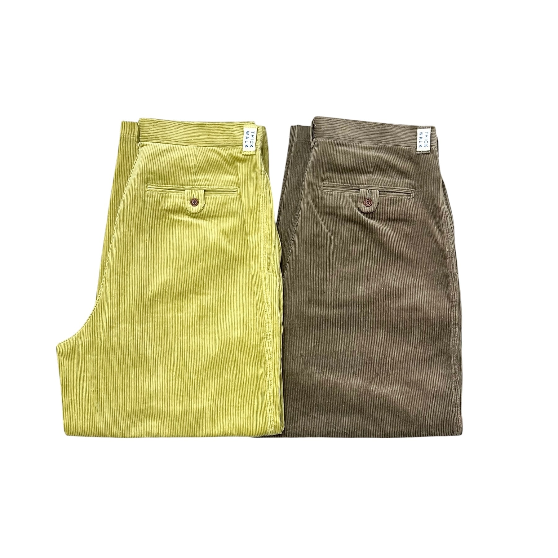 定番THCKWALK PANTの新色。生地は日本製の綿麻混紡糸で織りあげたコーデュロイをオリジナルカラーで染めました。サイズはM, Lの展開となっており、過去にリリースのあったTHCKWALK PANTと同サイズ感となっております。