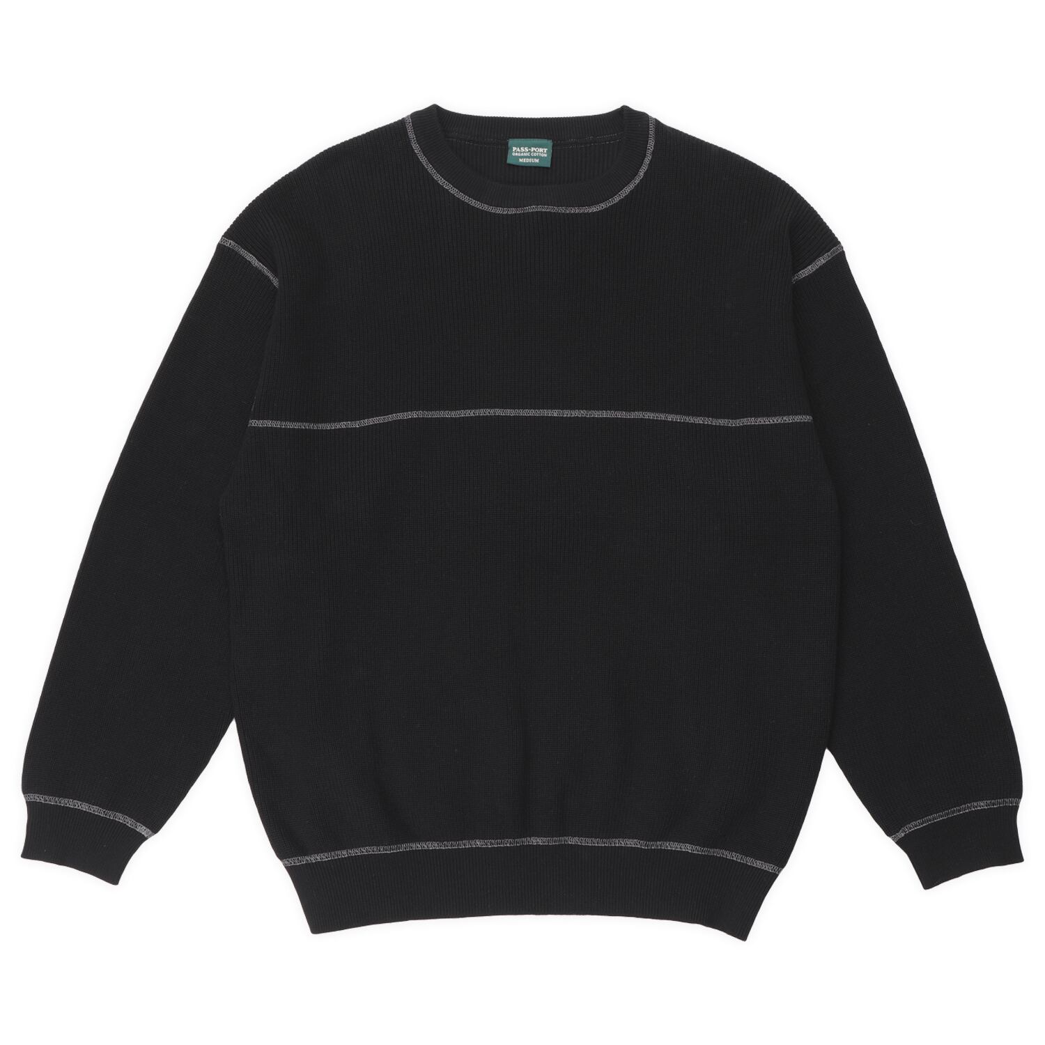 Pass~Port Overlocked Organic Knit Sweater in black from the organic line for range #46. This sweater is made from 100% organic grown cotton knit and features overlock stitching throughout.