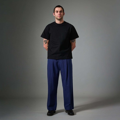 Pass~Port Leagues Club Pant in navy from range #46. The Leagues club trouser is made from 100% garment dyed cotton herringbone twill and features double pleats and custom button, the perfect trouser to wear in all occasions.