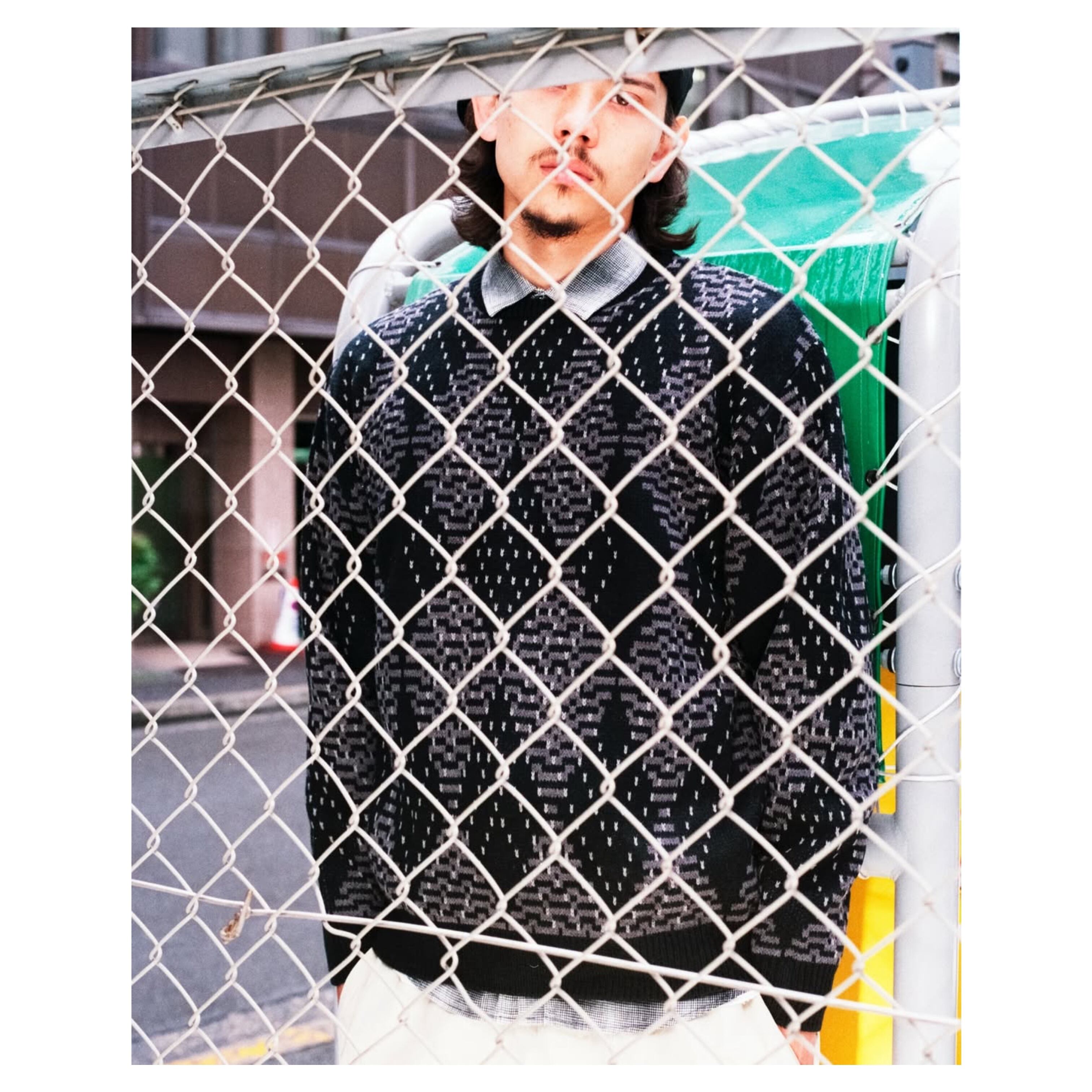 大胆なアーガイルパターンをWHIMSYらしい配色で再構築。軽やかな編み地で、程よい落ち感ですっきりとしたシルエットを実現。 一着でも主役になる存在感とシャツやアウターのレイヤードにも使いやすくこれからの季節活躍する。