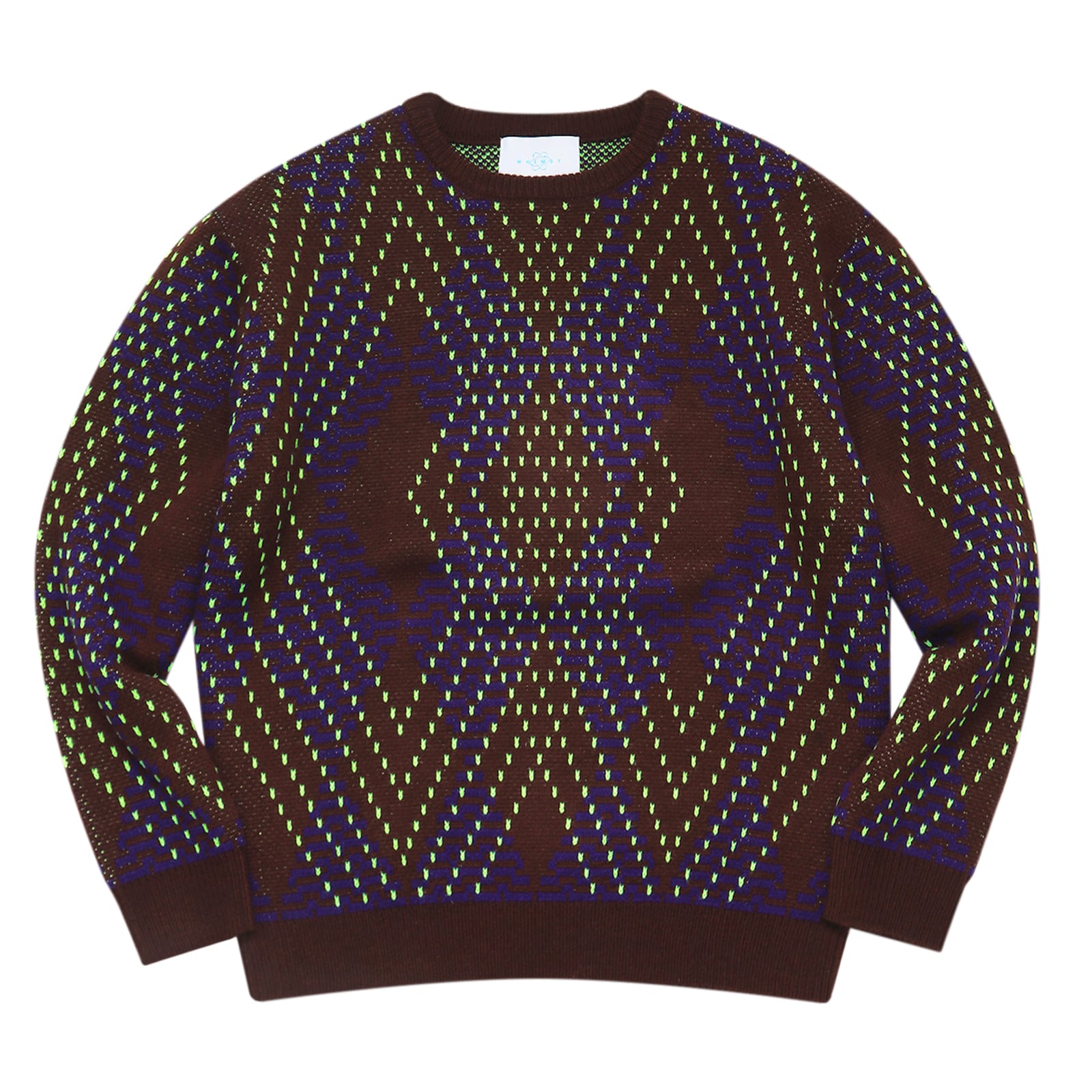 大胆なアーガイルパターンをWHIMSYらしい配色で再構築。軽やかな編み地で、程よい落ち感ですっきりとしたシルエットを実現。 一着でも主役になる存在感とシャツやアウターのレイヤードにも使いやすくこれからの季節活躍する。