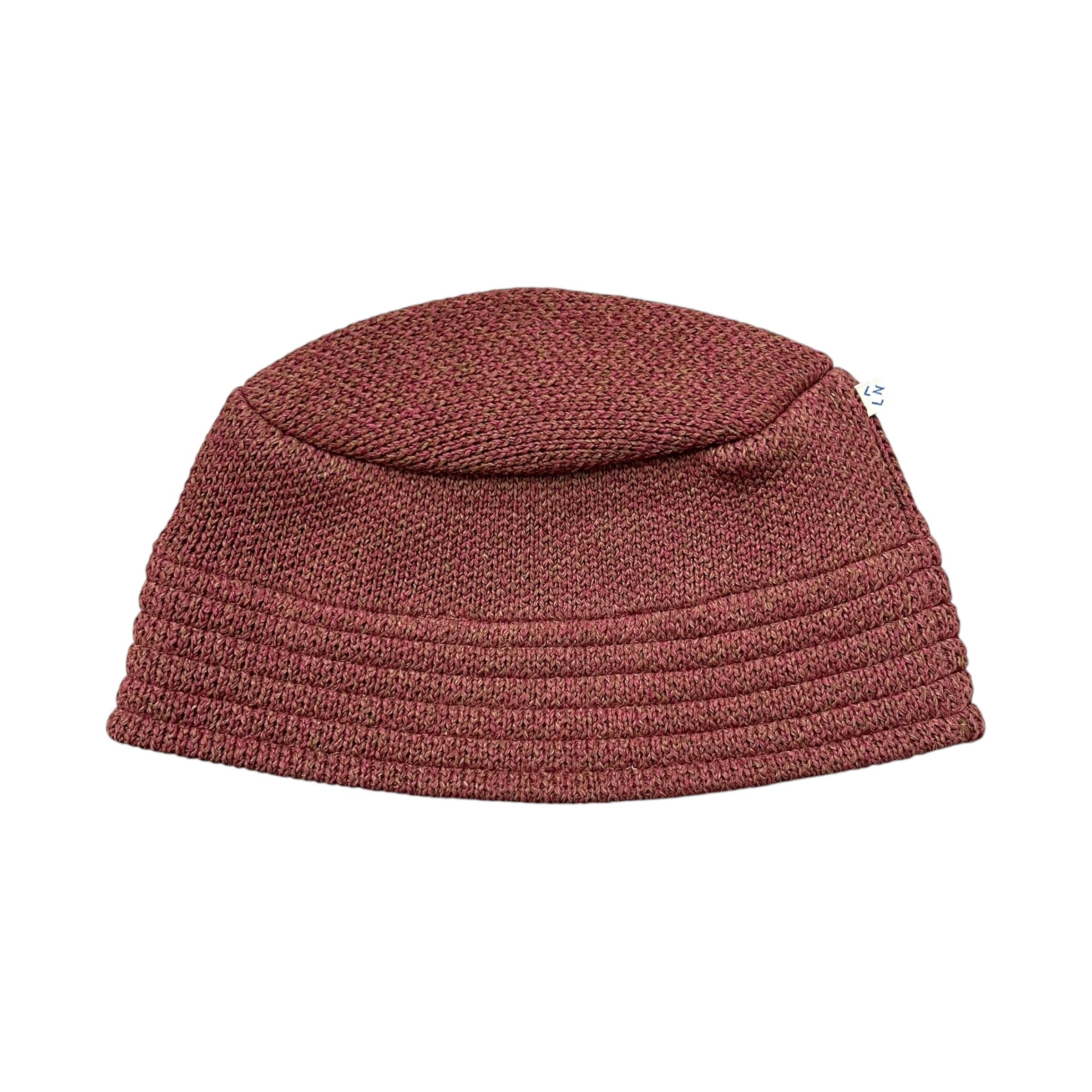 和紙,ポリエステル,ナイロンをブレンドしたシャリ感ある糸を2色混ぜ撚った定番ニットバケットハット。和紙素材は優れた吸水速乾性を持ち、毛玉ができにくく、防シワ性と機能性の高さがあります。