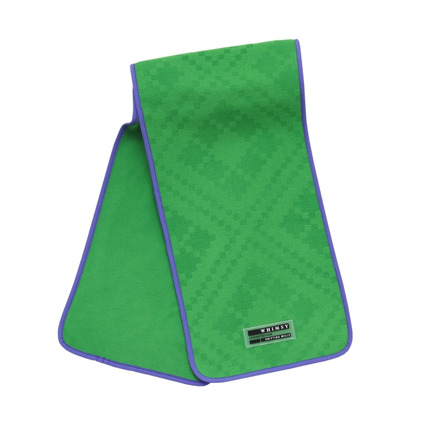 表面にラバータグとレーザー加工によるオリジナルのピクセルパターンが入ったフリースマフラー。