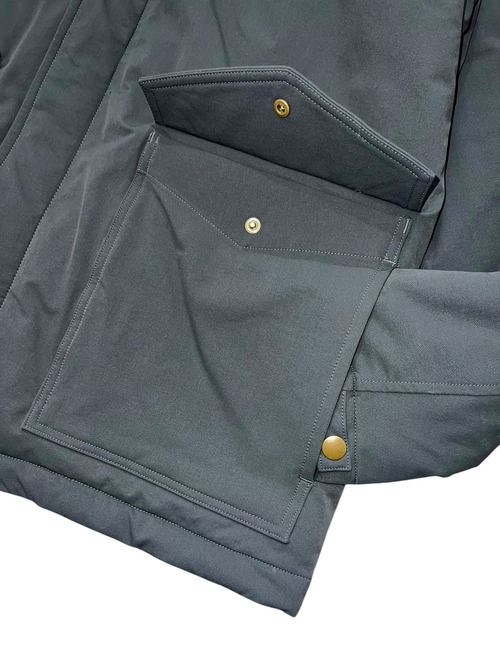 撥水・ストレッチ性のあるナイロン素材を使用したミドル丈の中綿ジャケット。 軽さと暖かさを追求したsunstate2の高機能中綿を使用。 衿には密度の高いボアを配置しフライトジャケットライクな雰囲気を演出。 フロントの2WAYポケットと左右に配置した内ポケットで収納力もある1着。 前開きはダブルジップ、袖口はタブで調節可能。