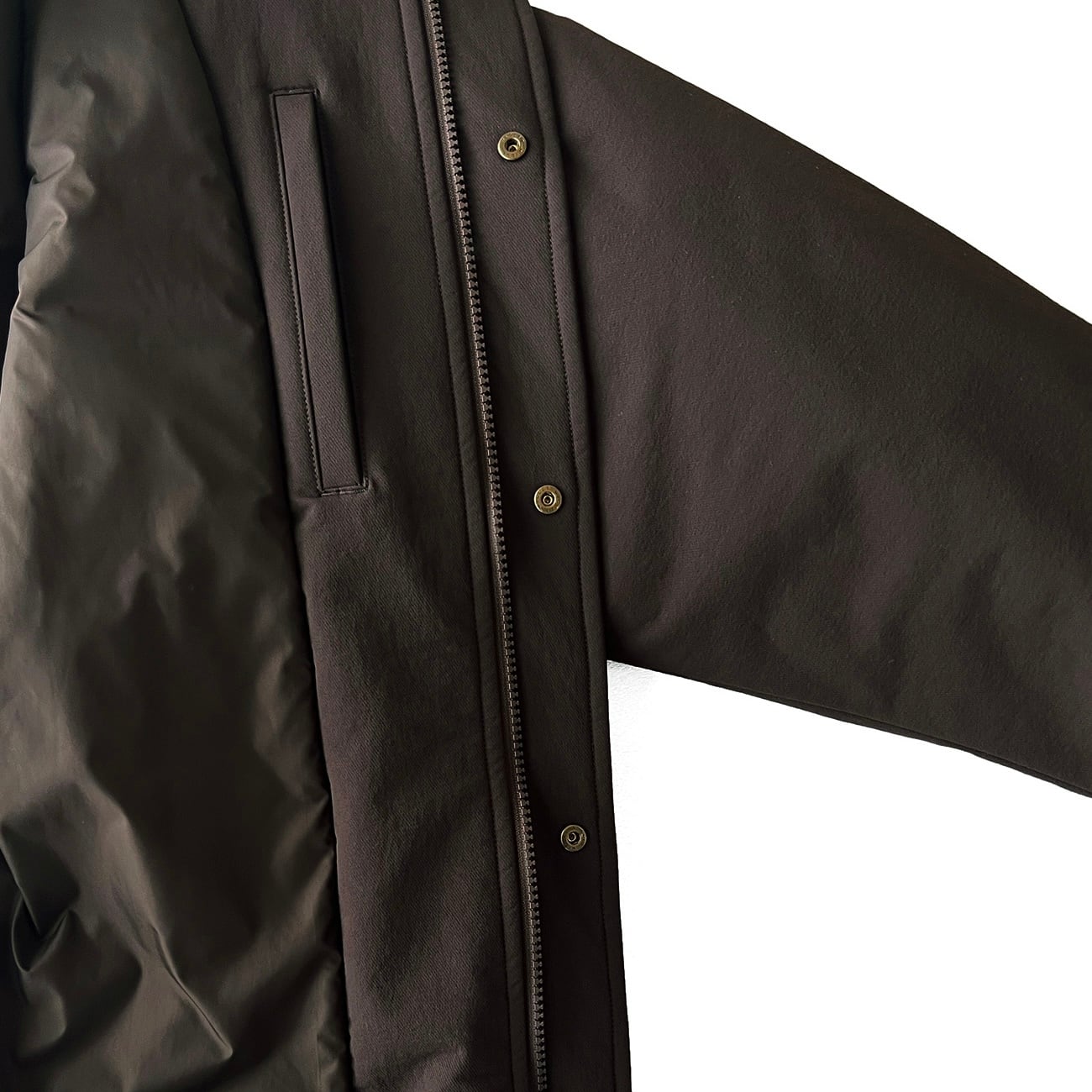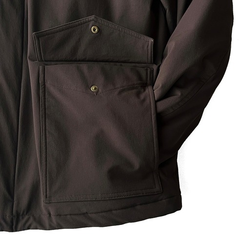 撥水・ストレッチ性のあるナイロン素材を使用したミドル丈の中綿ジャケット。 軽さと暖かさを追求したsunstate2の高機能中綿を使用。 衿には密度の高いボアを配置しフライトジャケットライクな雰囲気を演出。 フロントの2WAYポケットと左右に配置した内ポケットで収納力もある1着。 前開きはダブルジップ、袖口はタブで調節可能。