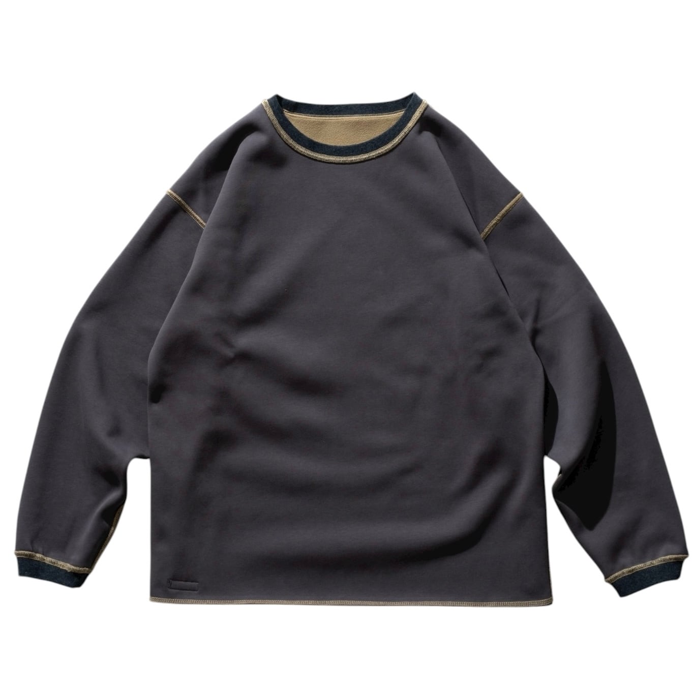 着丈の裾部分にはあえてリブを用いず、自然な落ち感によってリラックスしたシルエットになっております。リバーシブルで肌触り、着心地の良いフリースを使用。両面共に着回しの効く落ち着いたトーン。ナイスカラーです。for Unisex! 男女問わずオススメです。