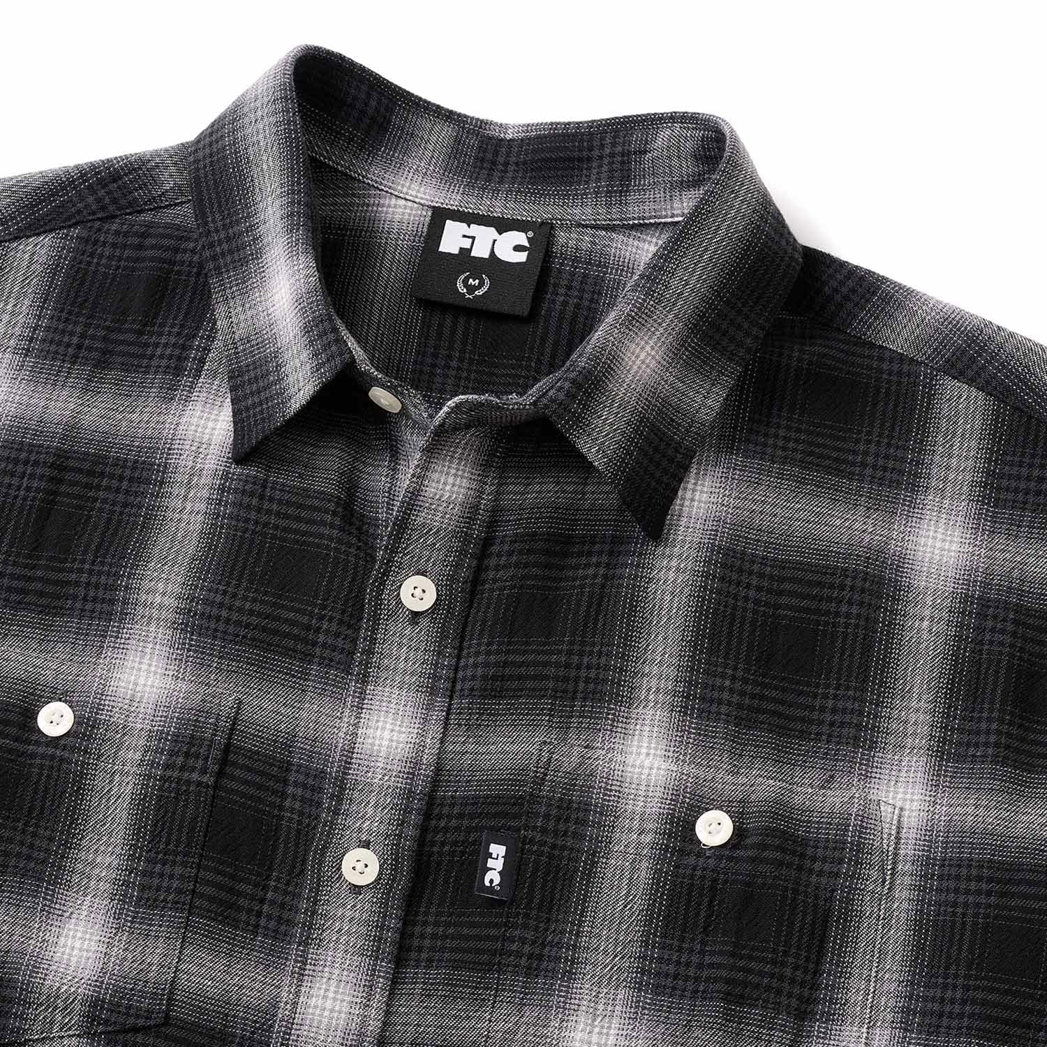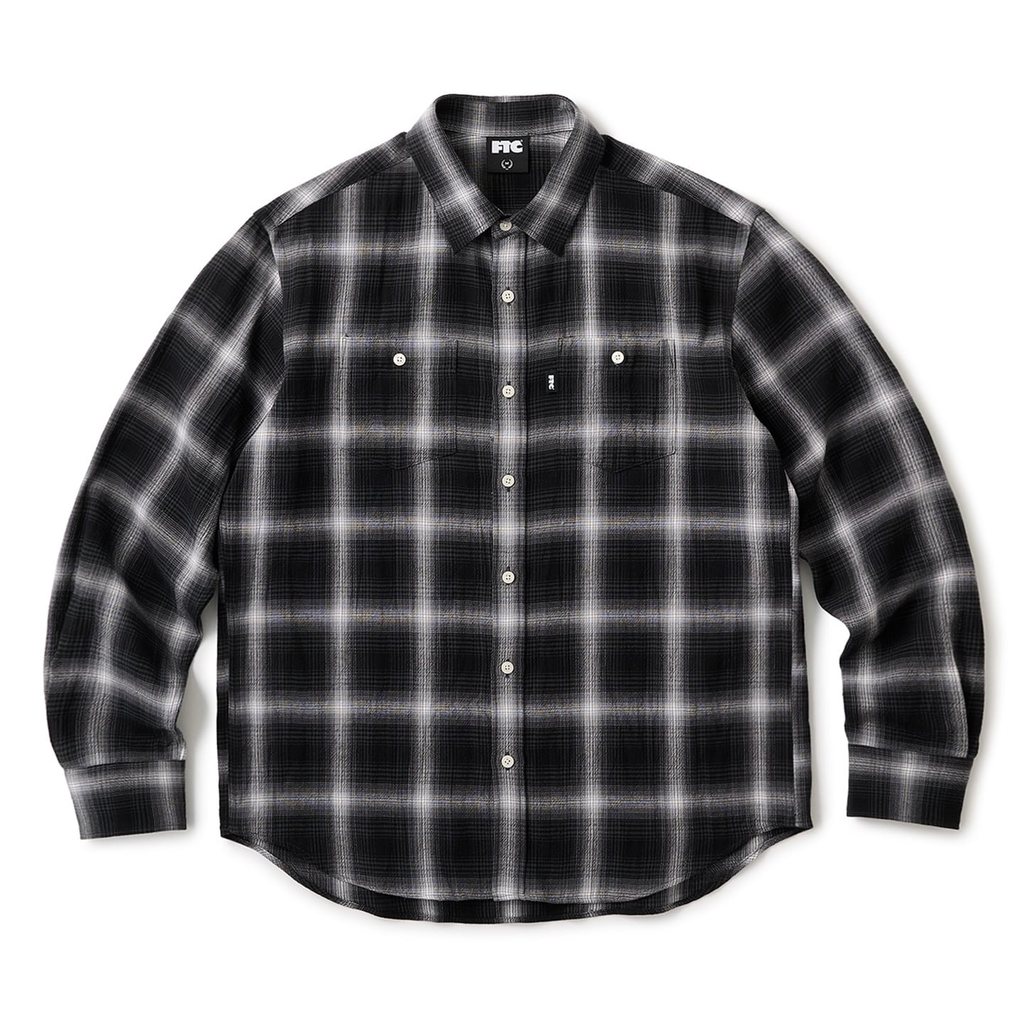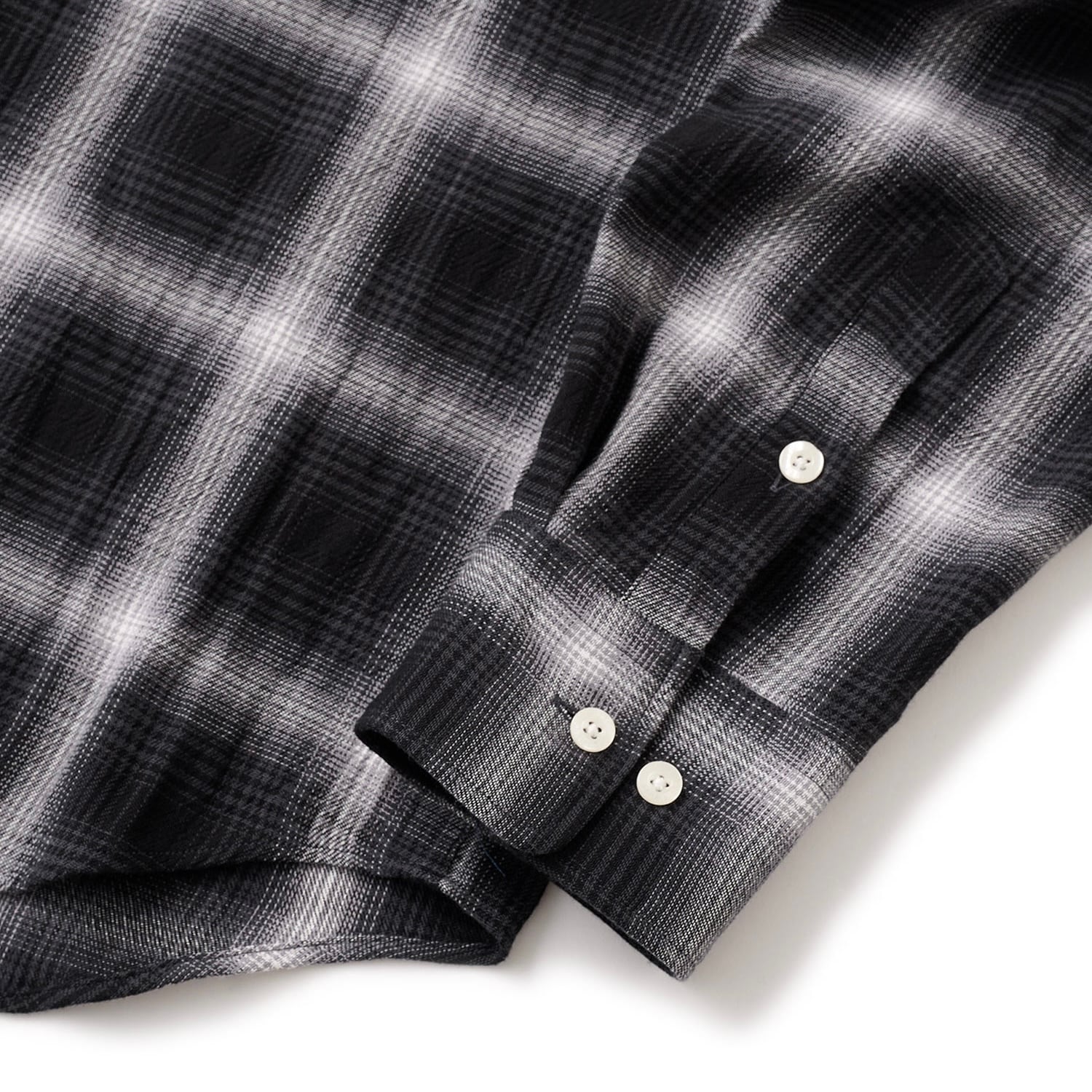 ウォッシュド加工が施されたオンブレーチェックを使用したシャツ。バックヨークにハンガーループ。オリジナルボタン。左胸ポケットにピスネーム。