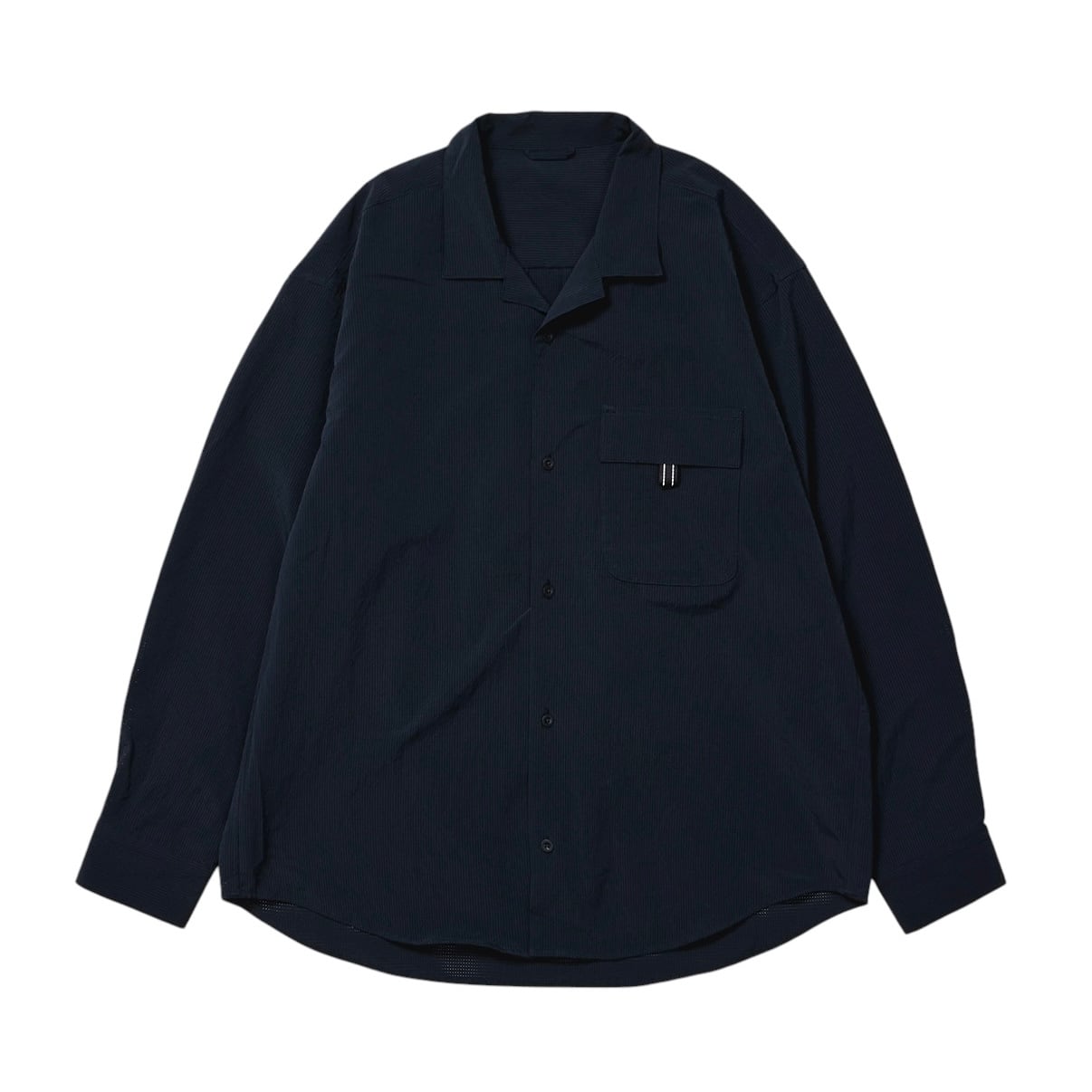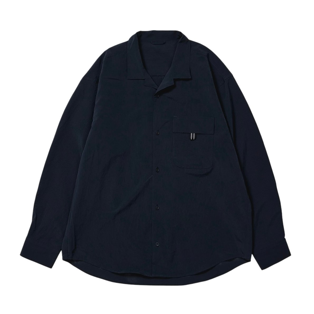 スポーティーな素材を使用したシャツ。イージーケア。通気性がとても良い、軽量でドライタッチなリネンライク素材。シワ加工により、カジュアルな印象にも。