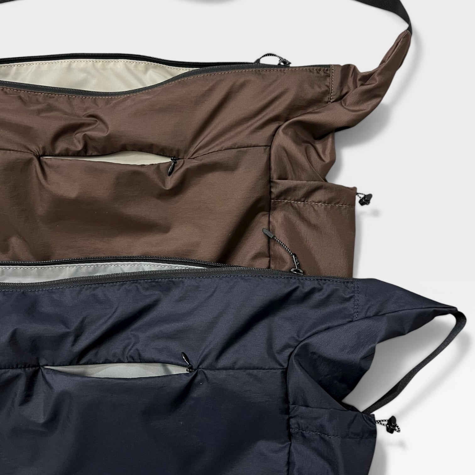 TASUKI(タスキ)はアウトドアバッグのディティールを取り入れた、機能的で実用的なショルダーバッグです。18Lの容量ながら、約160gと非常に軽く、日常使いに丁度良いサイズ感。