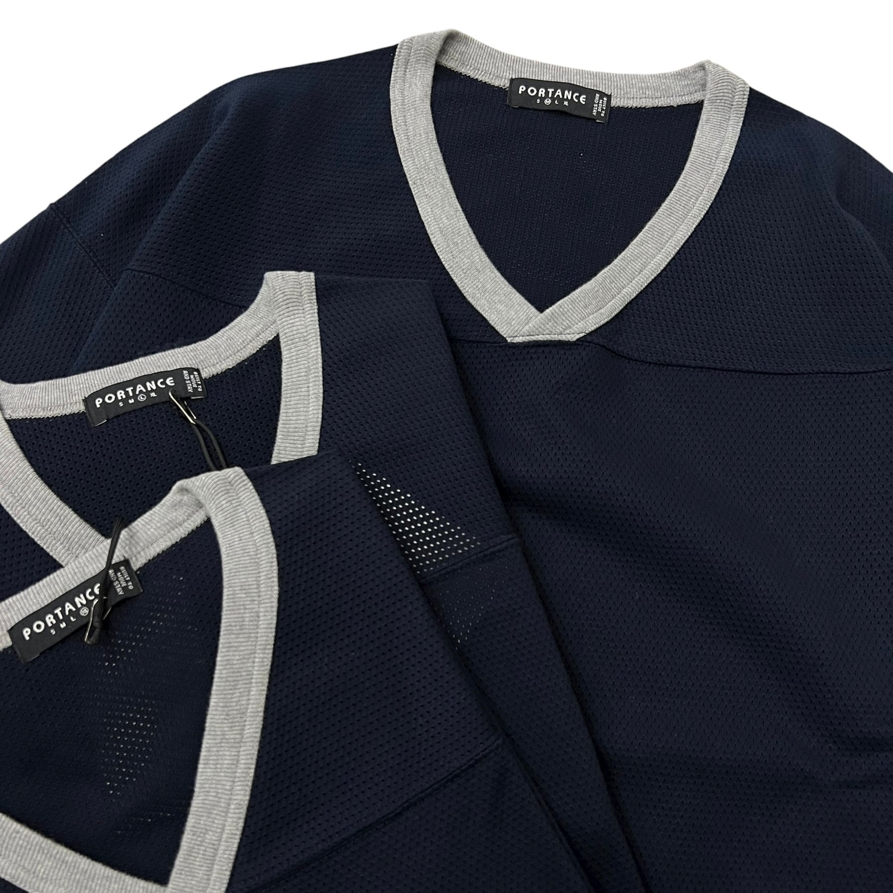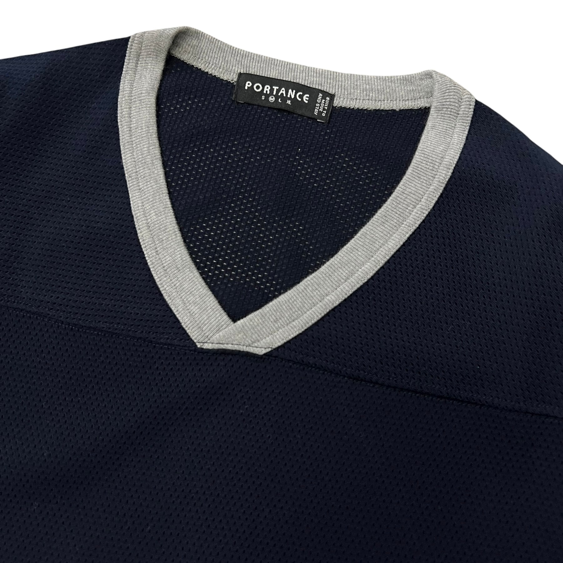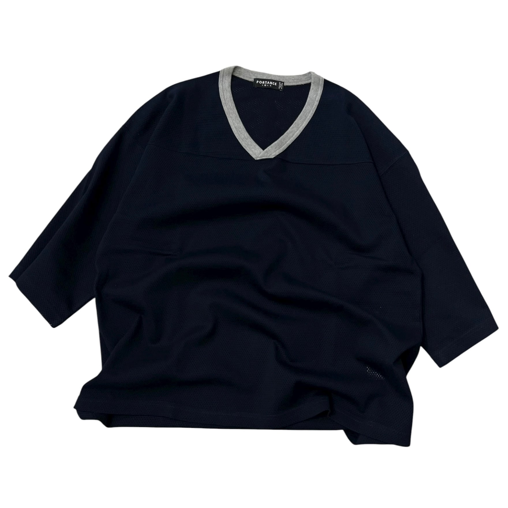 オリジナルのメッシュ素材を使用した7部袖のホッケーシャツ。通常のポリエステルメッシュと比較し、光沢の少ないコットンメッシュを独自開発。高い通気性を持ちつつ、柔らかな着心地を実現。Vネックパイピング仕様。