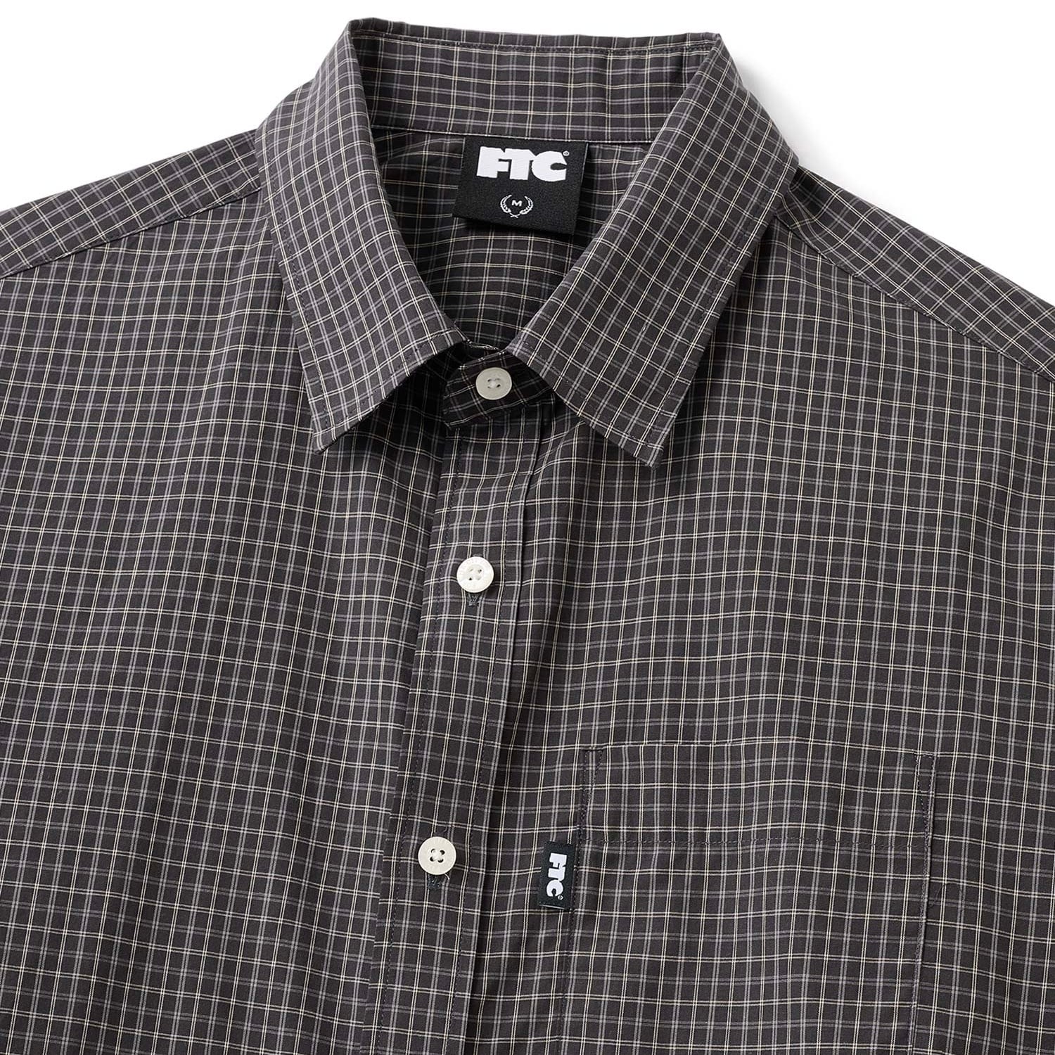M:着丈72cm 身幅60cm 肩幅51cm 袖丈24cm L:着丈75cm 身幅63cm 肩幅51cm 袖丈24cm XL:着丈78cm 身幅66cm 肩幅53cm 袖丈26cm コットンチェックを使用した半袖シャツ。バックヨークにハンガーループ。オリジナルボタン。左胸ポケットにピスネーム。 All cotton.