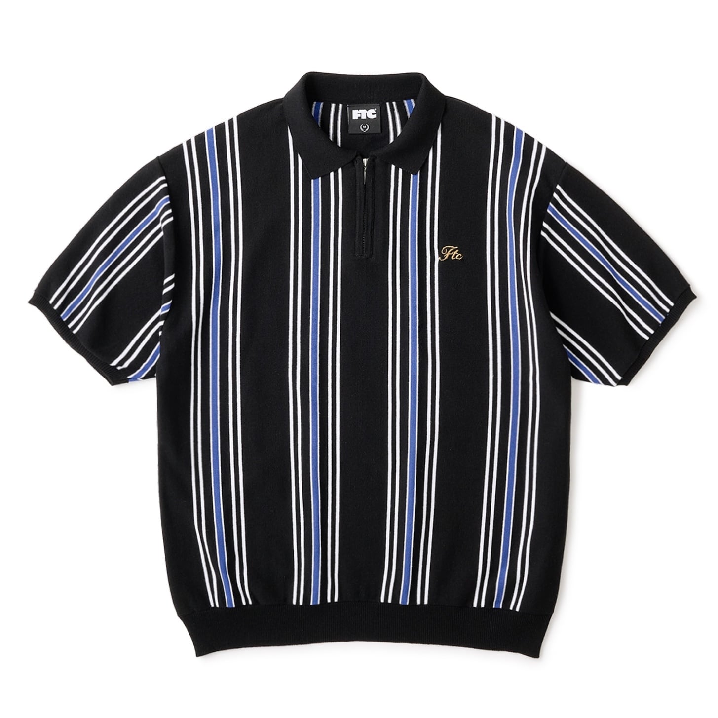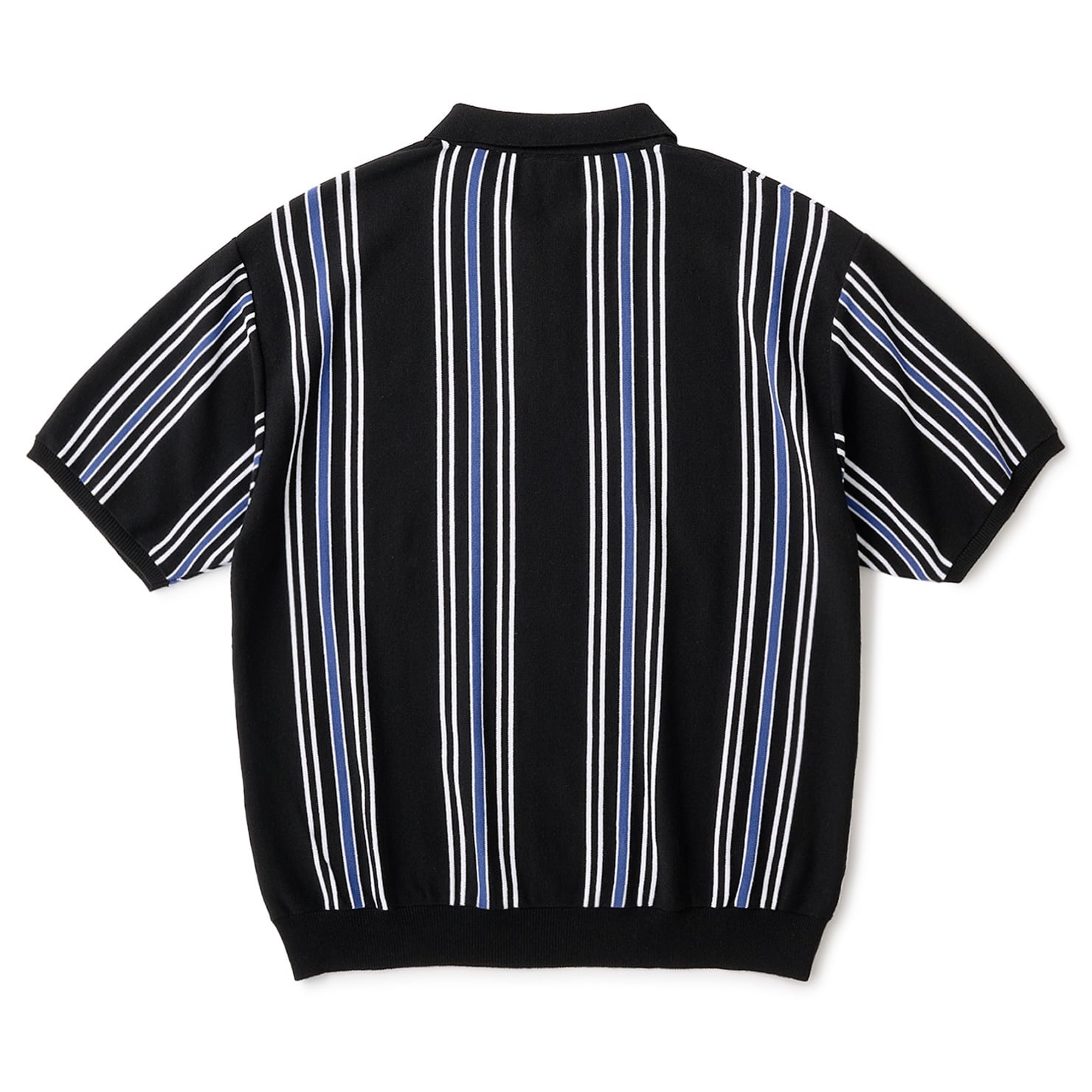 M:着丈69cm 身幅57cm 肩幅50cm 袖丈24cm L:着丈72cm 身幅60cm 肩幅52cm 袖丈25cm XL:着丈75cm 身幅63cm 肩幅54cm 袖丈26cm ジャガード編みのストライプコットンニットポロシャツ。左胸に刺繍。 All cotton knit. Embroidery on left chest.