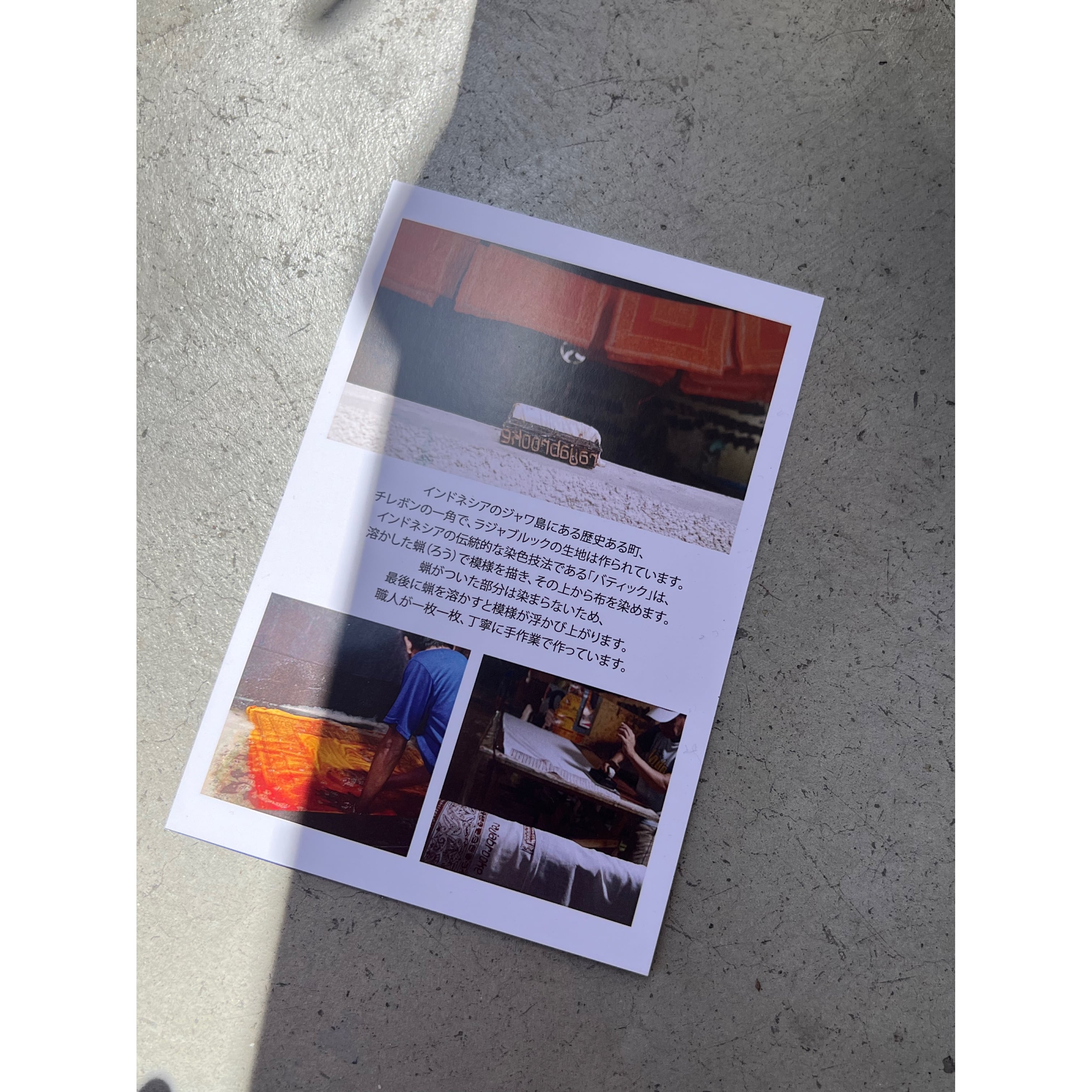 こちらは、インドネシアのバティック工場にて製作したリアルバティックサロン。本場のろうけつ染めで製作しているため、一点一点風合いが異なる仕上がりです。
