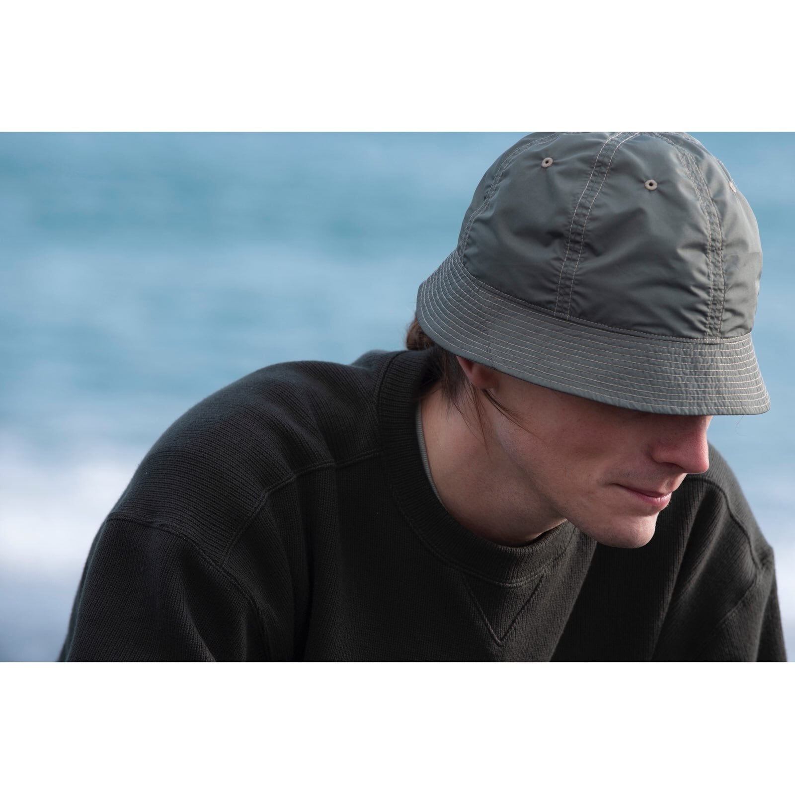 定番の DETOURS HAT をベースに、 高密度で微起毛のポリエステル素材を使用。 撥水であり水もハジキ、メモリー調でシワを気にせず持ち運べます。 裏の滑りはパイルを使用しているので汗も吸収してくれます。機能性抜群です。前回までの HAT にパイルの厚み分少しサイズ感が小さくなります。