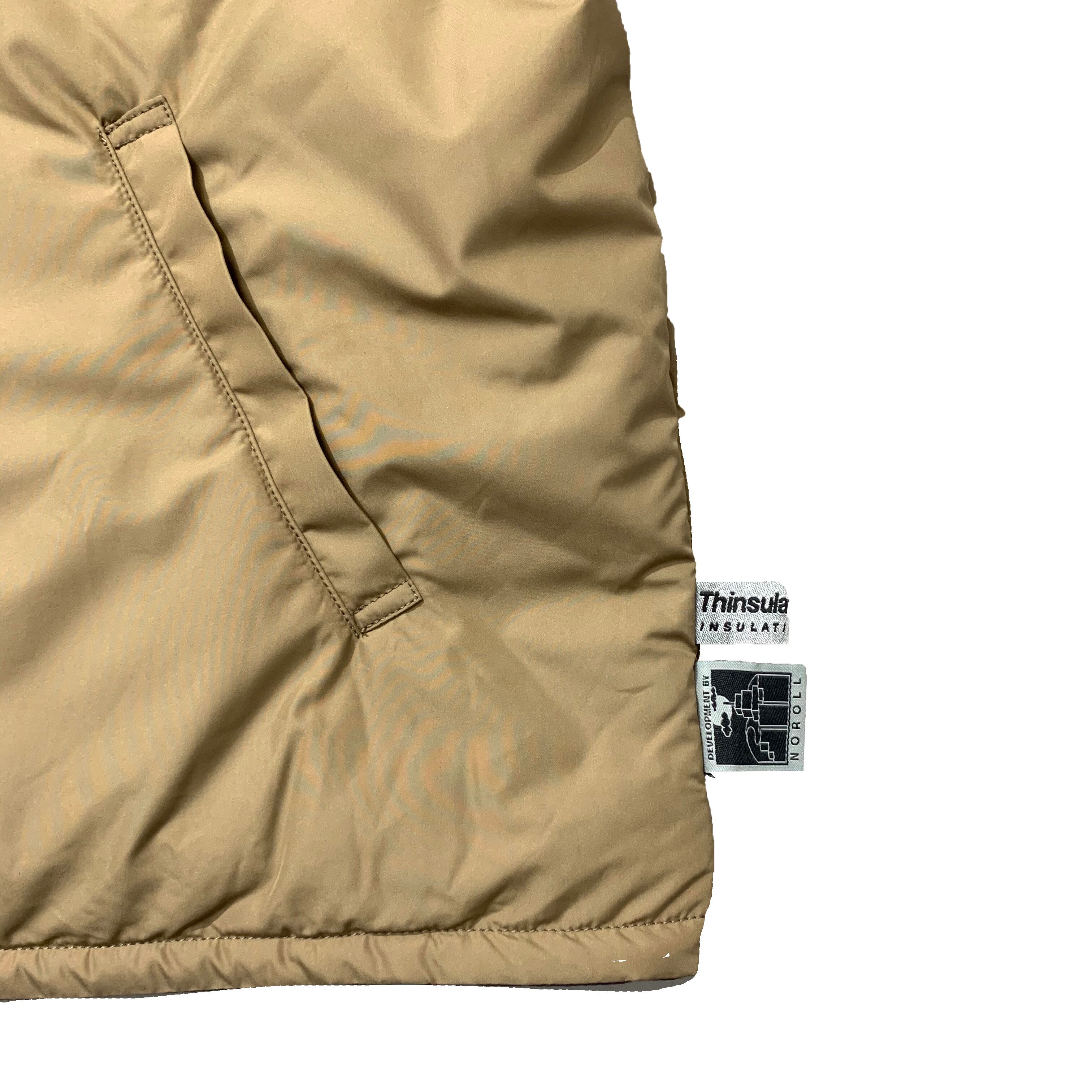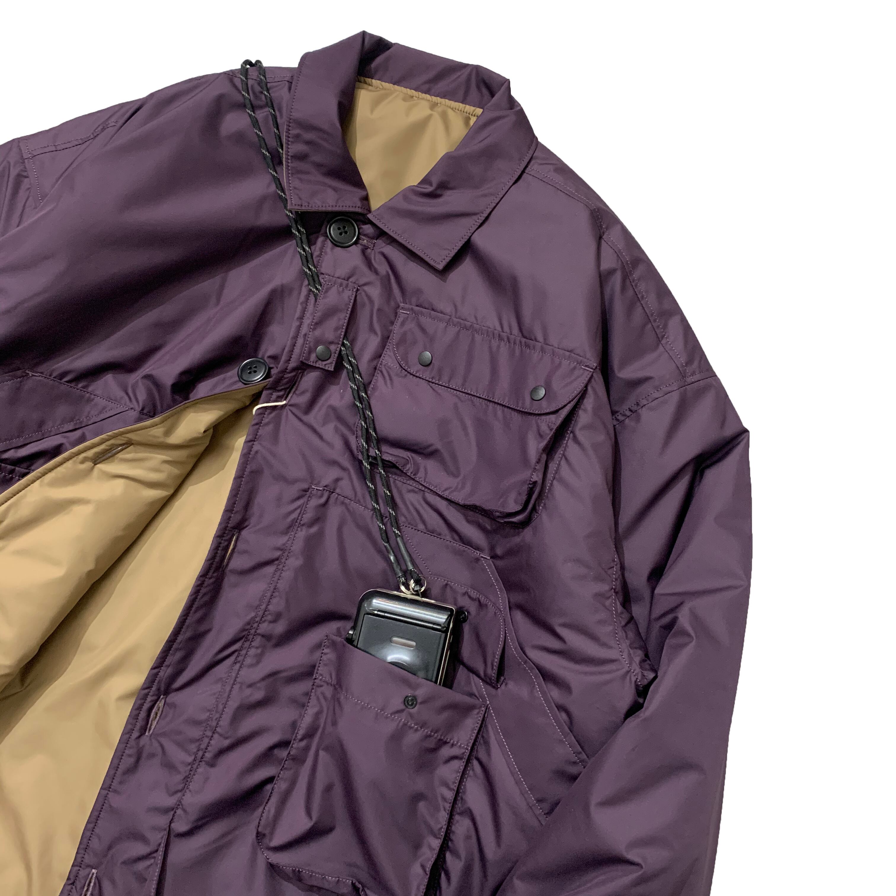 素材が軽く、着込んでも肩がこらない真冬まで着れるアウターを意識した機能性、防寒性を持つジャケットです。3MシンサレートのEX100はダウンと同じ感覚で真冬も対応でき、しっかりと膨らみがあり軽い仕上がりです。多ポケット面は使い方は自由ですが "カメラジャケット"をイメージしておりカメラポケットを4個、左胸はフィルムポケット、肩からかけたカメラストラップを固定できるようワンタッチで着脱可能なベルト付き。両サイドには万能な大容量のポケット。裏側は逆に非常にシンプルに両サイドの腰ポケットのみ。昼は、機能性を活用して仕事着に、夜は裏返しで少し大人な装いで食事に行くなんて着方もオススメです。洗濯は、手洗いを推奨しておりご自宅でケアが可能です、ドライ不可。