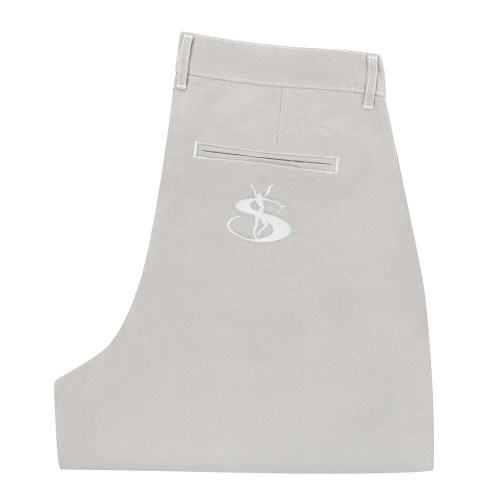 M:ウエスト80cm わたり36cm 股下74cm 裾幅23cm L:ウエスト84cm わたり38cm 股下76cm 裾幅24cm 100% cotton canvas slacks. Side and back pockets. Contrast stitching. Loose fit. Yardsale Phantasy embroidery.