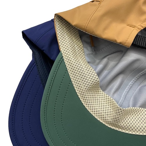 2016年にリリースしたDEVELOP CAP型をベースにスイスのシェラーという撥水素材を使用しシームテープ縫製の完全防水のCAPとなります。サイド、バックのパネルはベンチレーションが付き、梅雨から、夏場にかけ通気性も良く蒸れない仕上がりです。完全防水に、ベンチレーション、尚且つシルエットナイスなNOROLLらしい拘り詰まったCAPです。いいカラーですね〜オススメです。