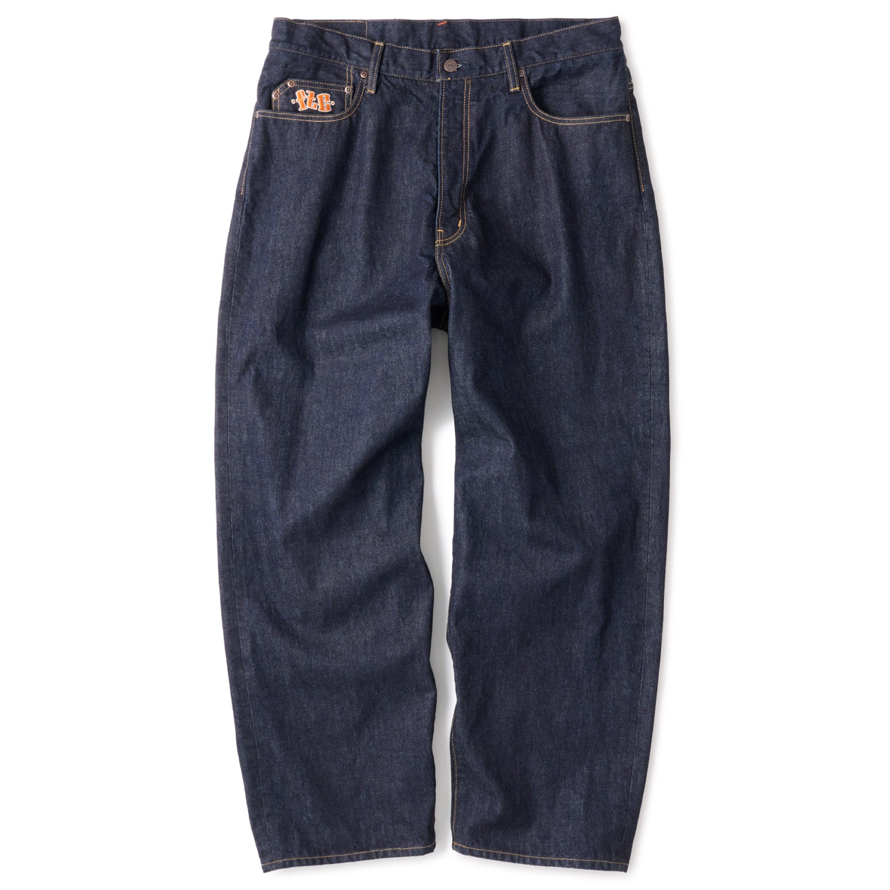 バギーシルエットの5ポケットデニムパンツ。14ozのバイオストーンウォッシュとミッドウォッシュ、ブラックウォッシュ。ジッパーフライ。コインポケットに刺繍。ポケットスレキにプリント。オリジナルネオバボタン。