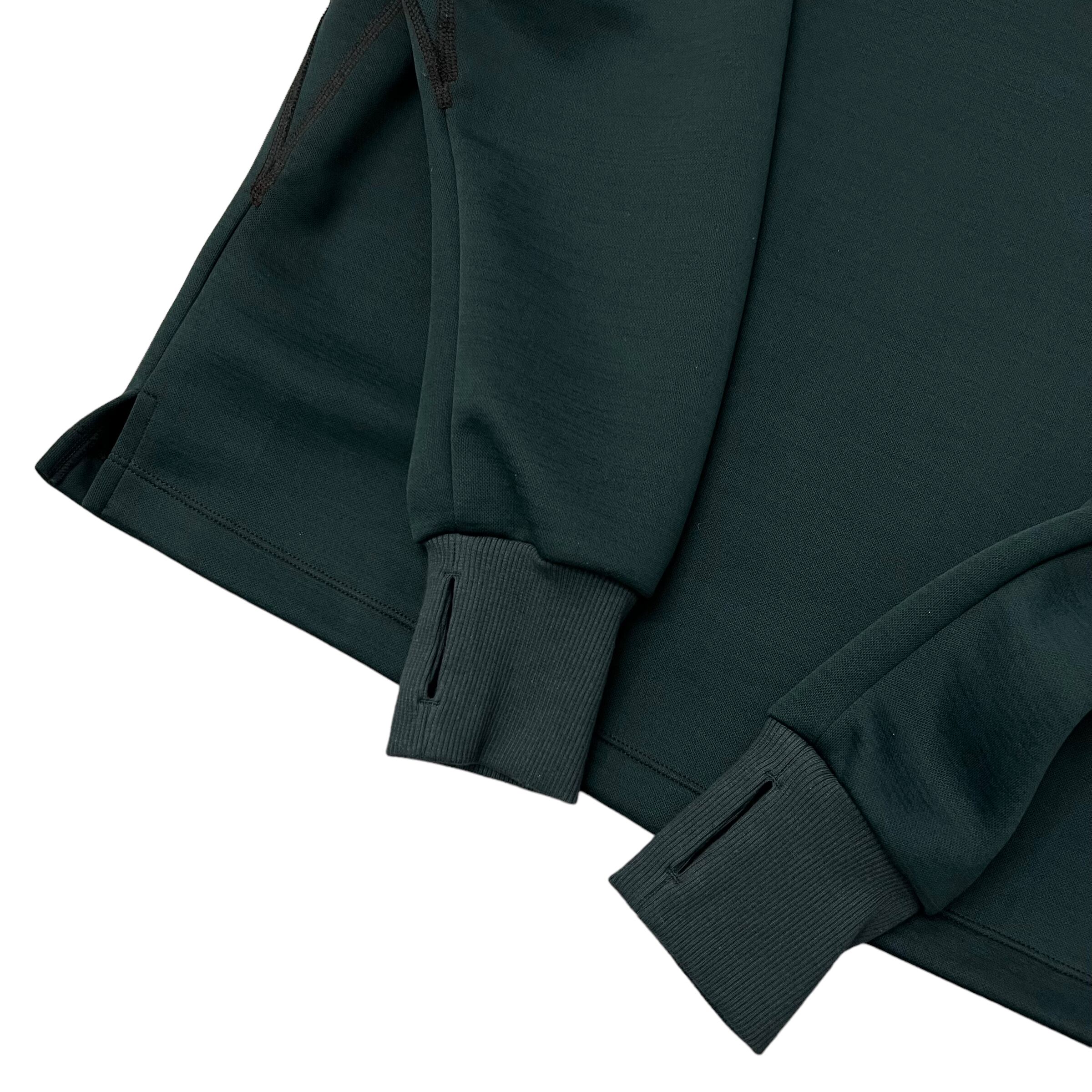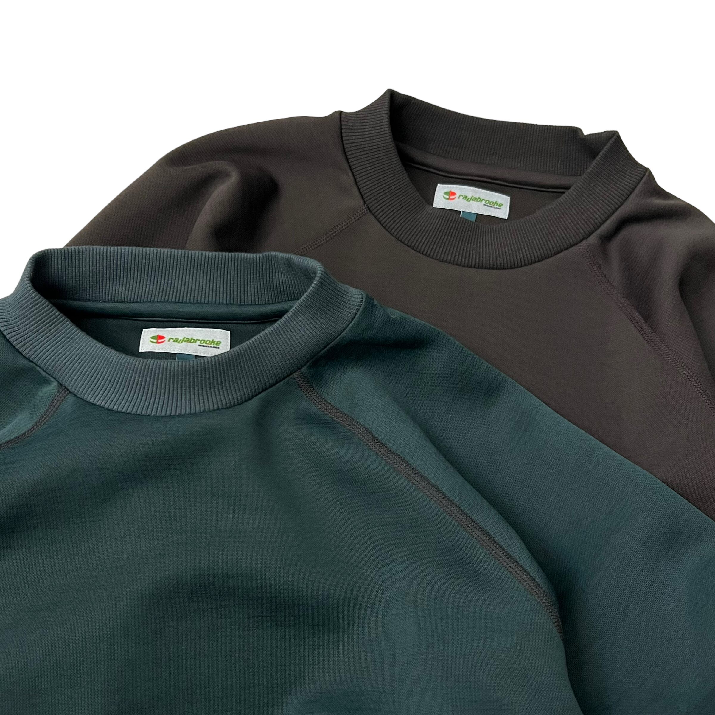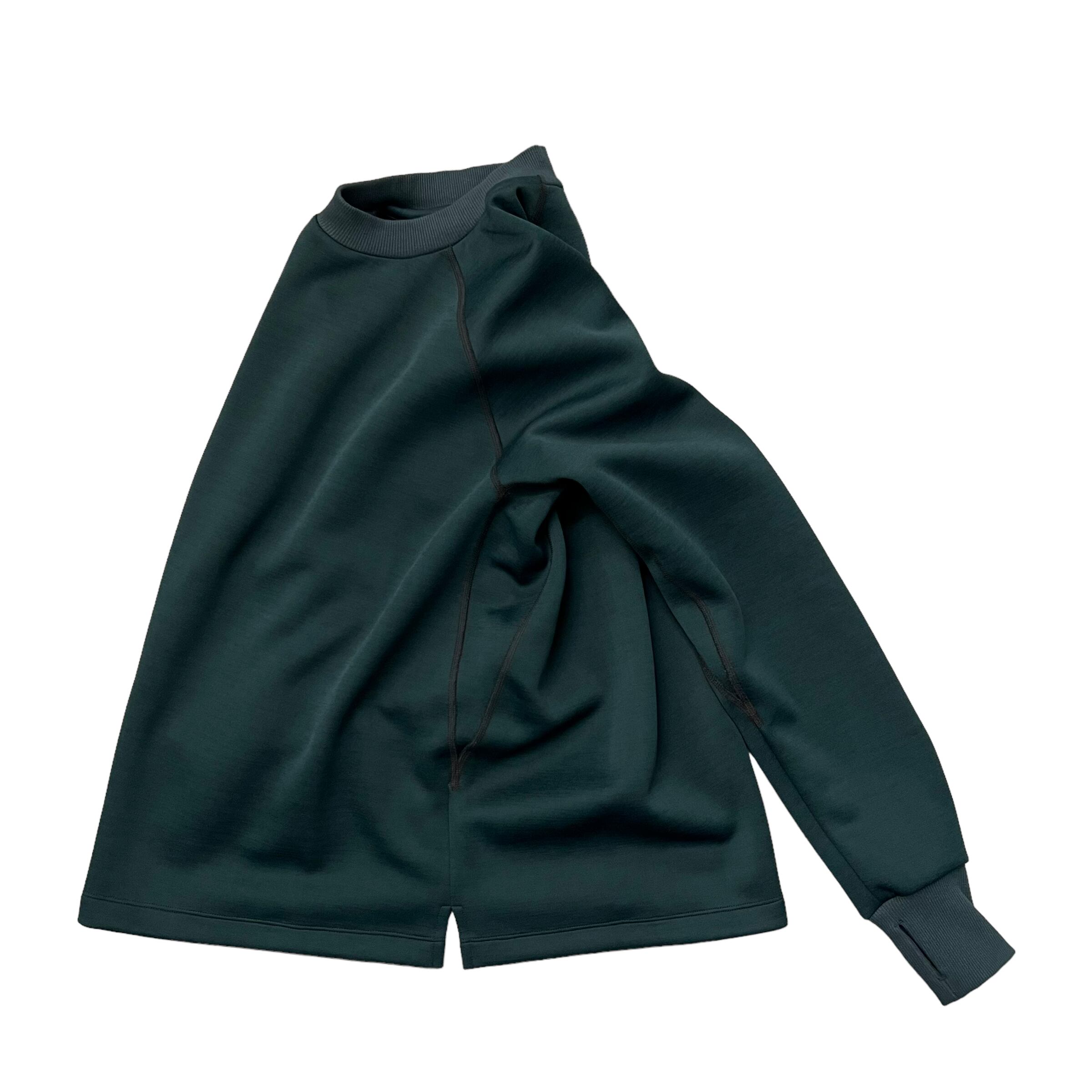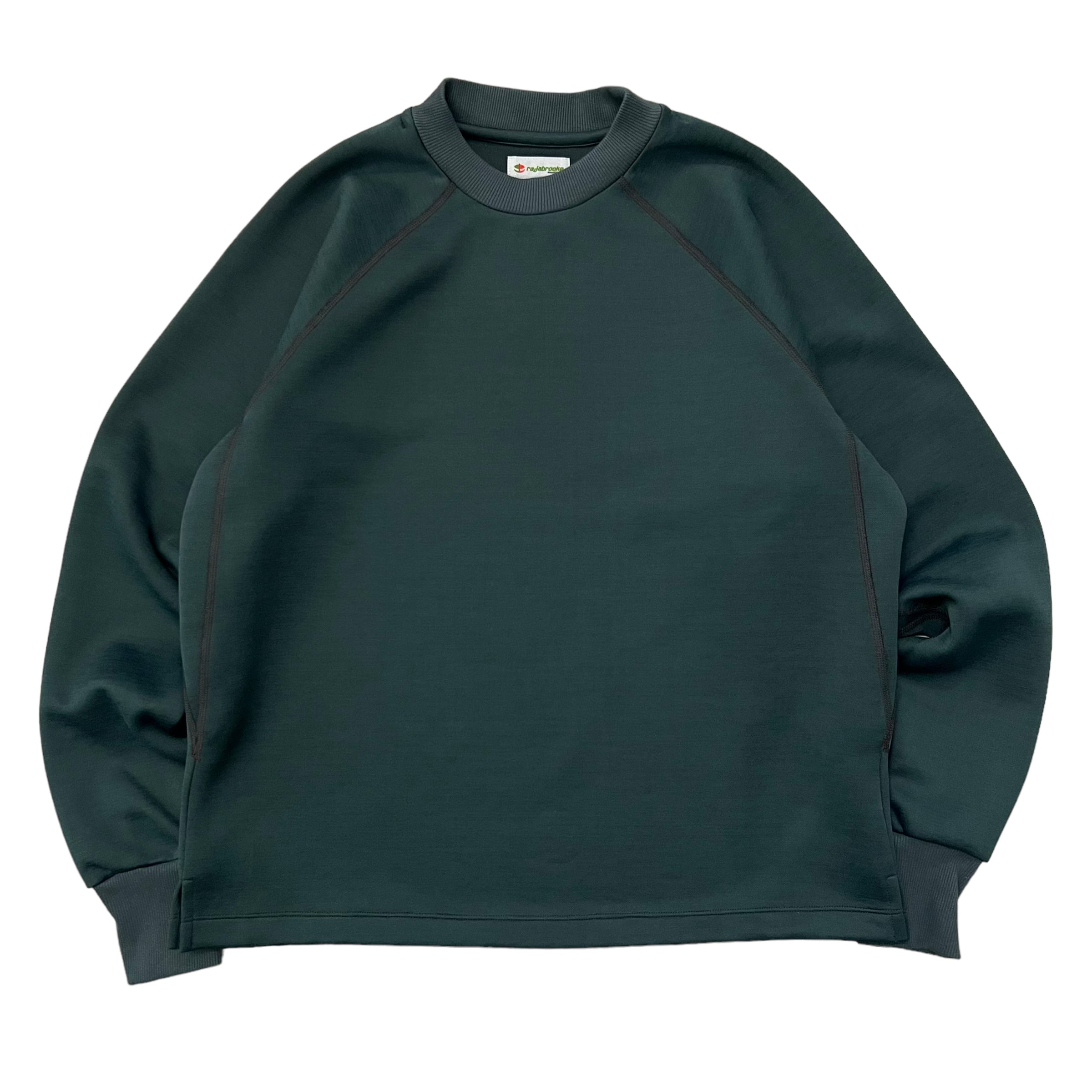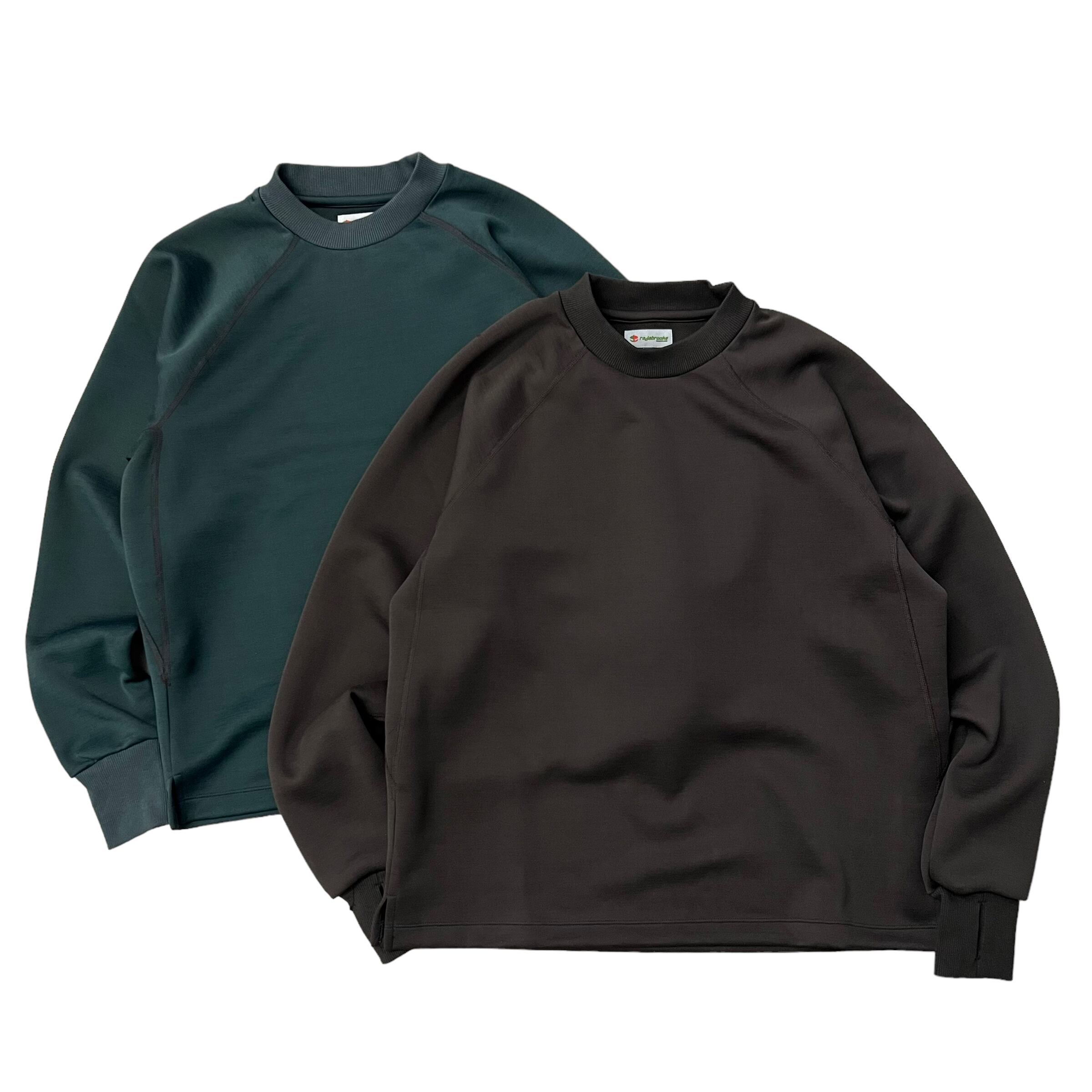 テックラグランスウェットです。袖口にサムホールあり。フラットシーマー縫製。オリジナルカラーに染色した帝人フロンティアのデルタを使用した、天然ライクなタッチで速乾性のある素材です。