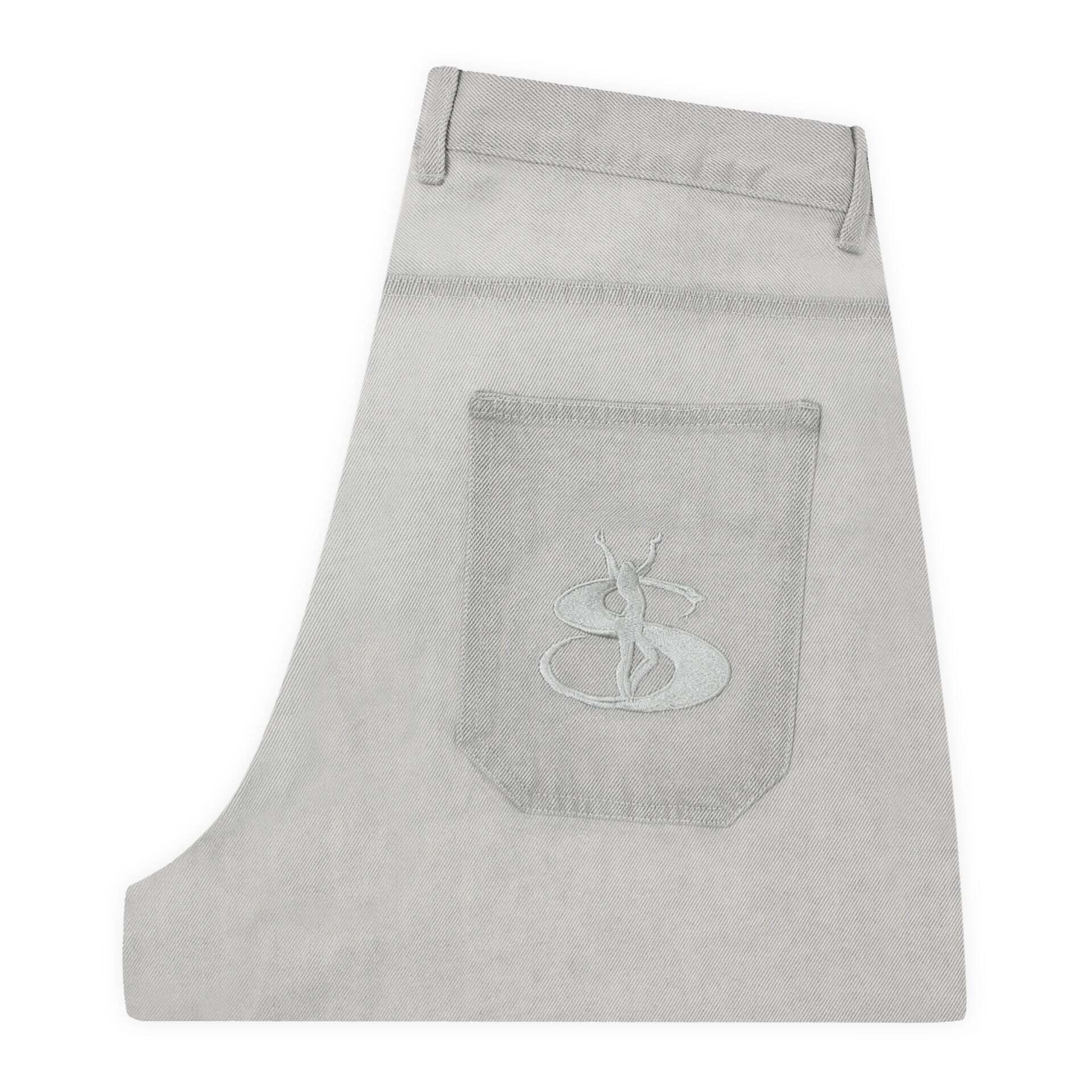 M:ウエスト80cm わたり36cm 股下74cm 裾幅23cm SOLD OUT L:ウエスト84cm わたり38cm 股下76cm 裾幅24cm SOLD OUT XL:ウエスト88cm わたり40cm 股下78cm 裾幅26cm SOLD OUT 100% cotton denim jeans. Side and back pockets. Loose fit. Embroidery at front and back pocket.
