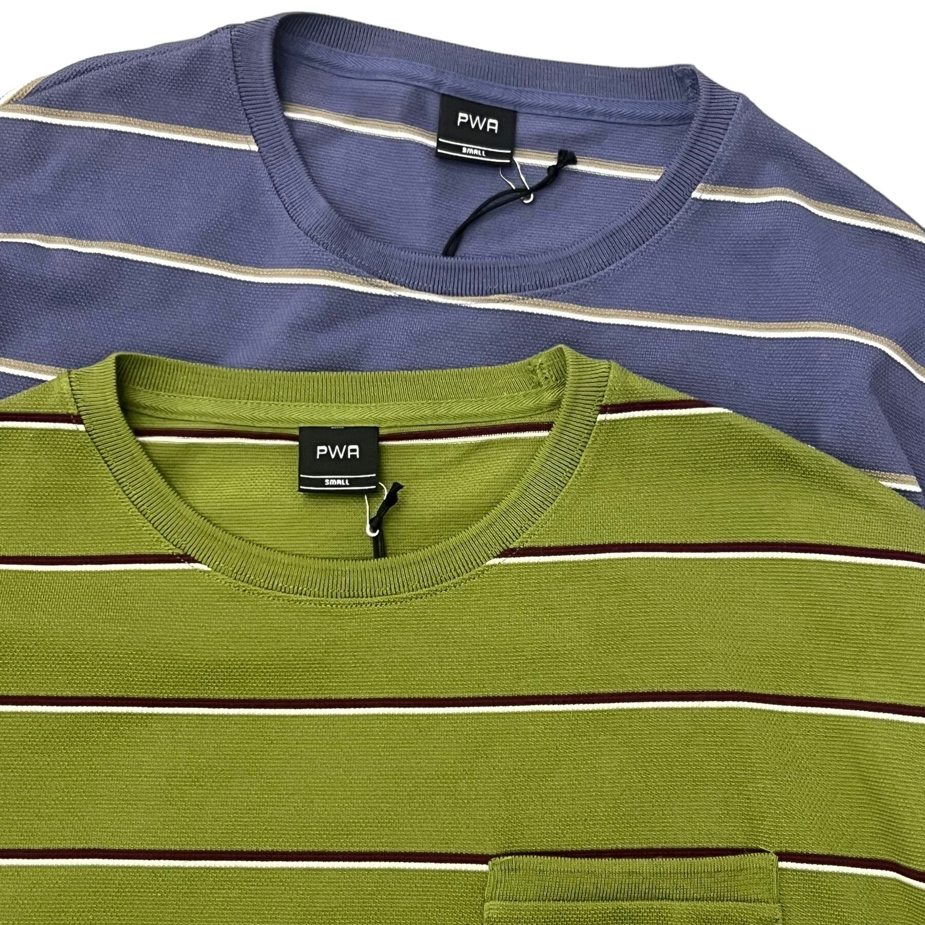 表面感のあるカノコ素材を採用したクルーネックTシャツ。 清涼感のある、ザラっとした肌触りが特徴的。 オリジナルボーダーパターン。