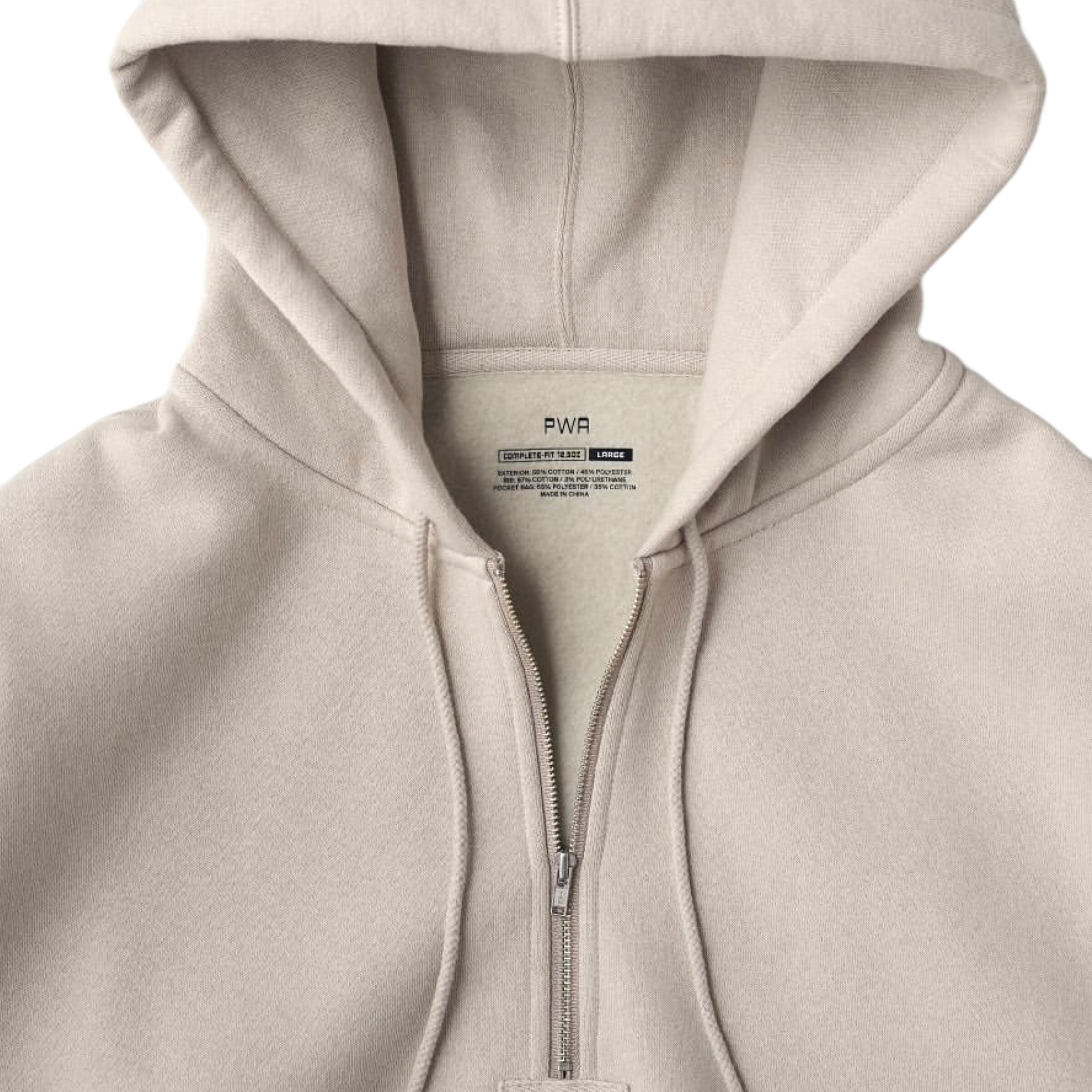 オリジナルで制作した裏起毛素材を使用したハーフジップフーディ