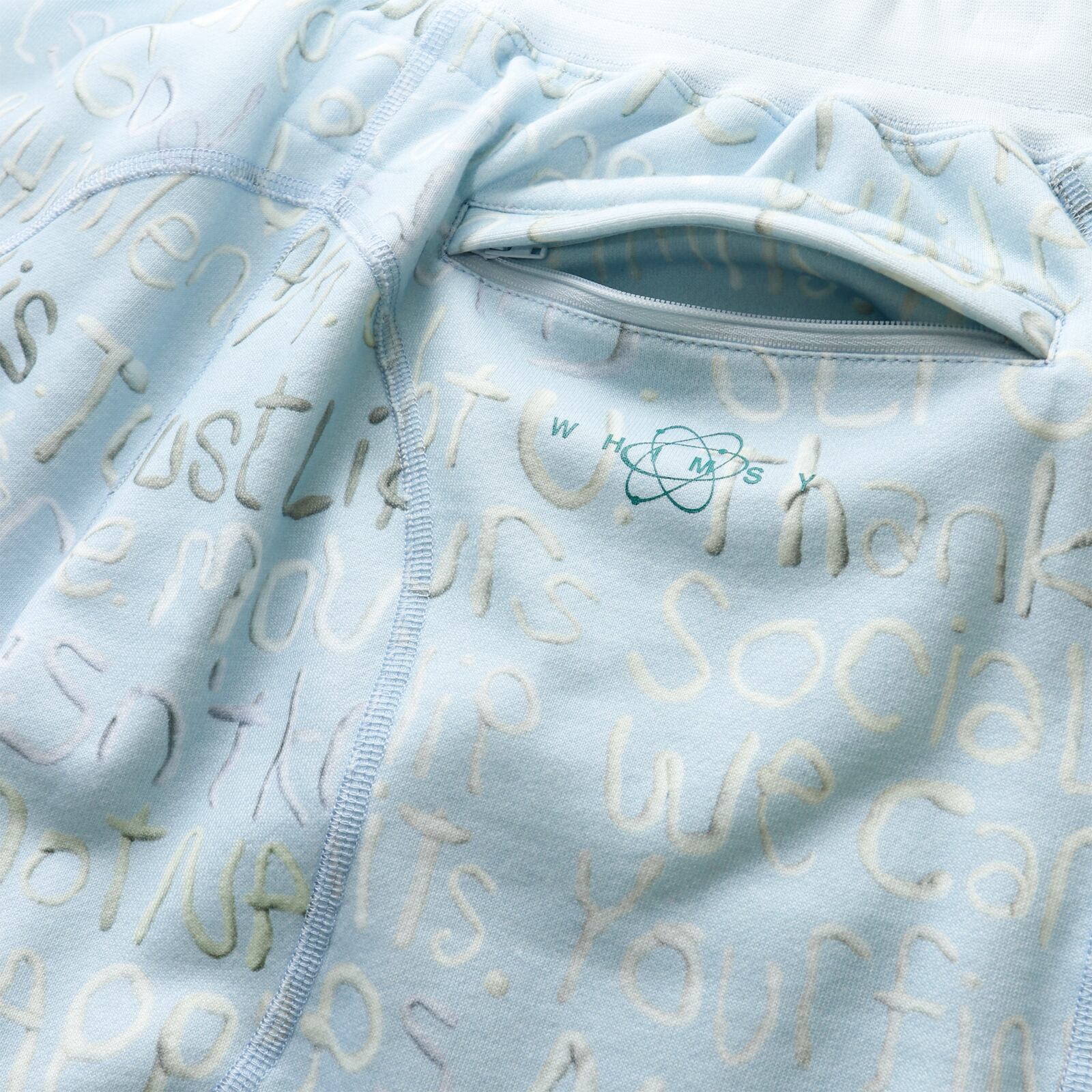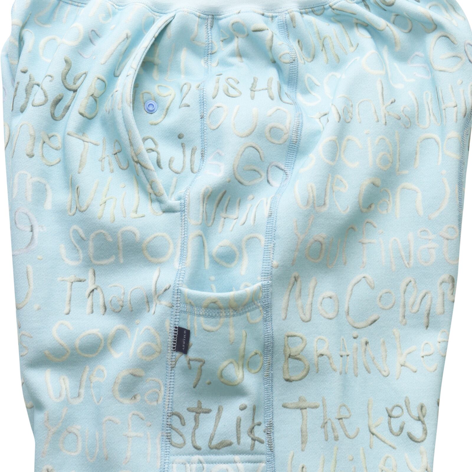 気鋭のアーティスト"Haruto Tsuda" 粘土でできた立体のレターを全面にプリントしたスウェットパンツ。従来のスウェットパンツと違いストレートで太すぎないシルエット。ヒップ周りをすっきりさせた事により、野暮ったくなる事が無くローファーやブーツとも相性の良いスウェットパンツとなっている。
