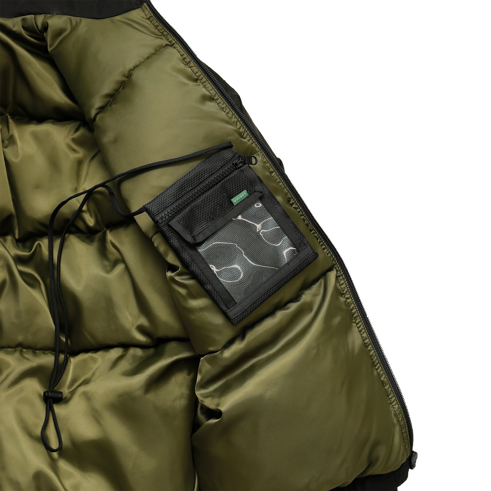 ダウンが登場する前のスキーウェアは、丈が短く中綿仕様で分厚く、とにかく着膨れする。そのシルエットこそが今の気分。70年代のスキーウェアを再構築し、街で過ごすためのアウターとして生まれ変わった。内ポケットに取り外し可能のポーチが付属するのは、スキーウェアの名残が残る。濡れないように内側のポーチにお金入れてご飯でも買いに行こう。ストリートではその必要ないので、別に内側から取り外して単品でもガンガン使えそうなビジュアルのポーチ。こういうの嬉しいですよね。