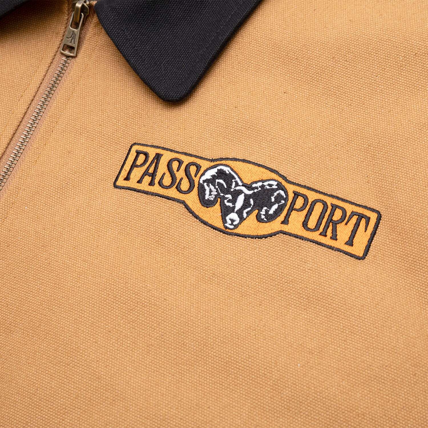 Pass~Port Ram Freight jacket for range #43. The Pass~Port jacket is made for workwear, made from 100% heavy duty washed canvas shell, it also is lined with cotton poplin for warmth. The Ram jacket also features embroidery on chest and triple stitch construction.